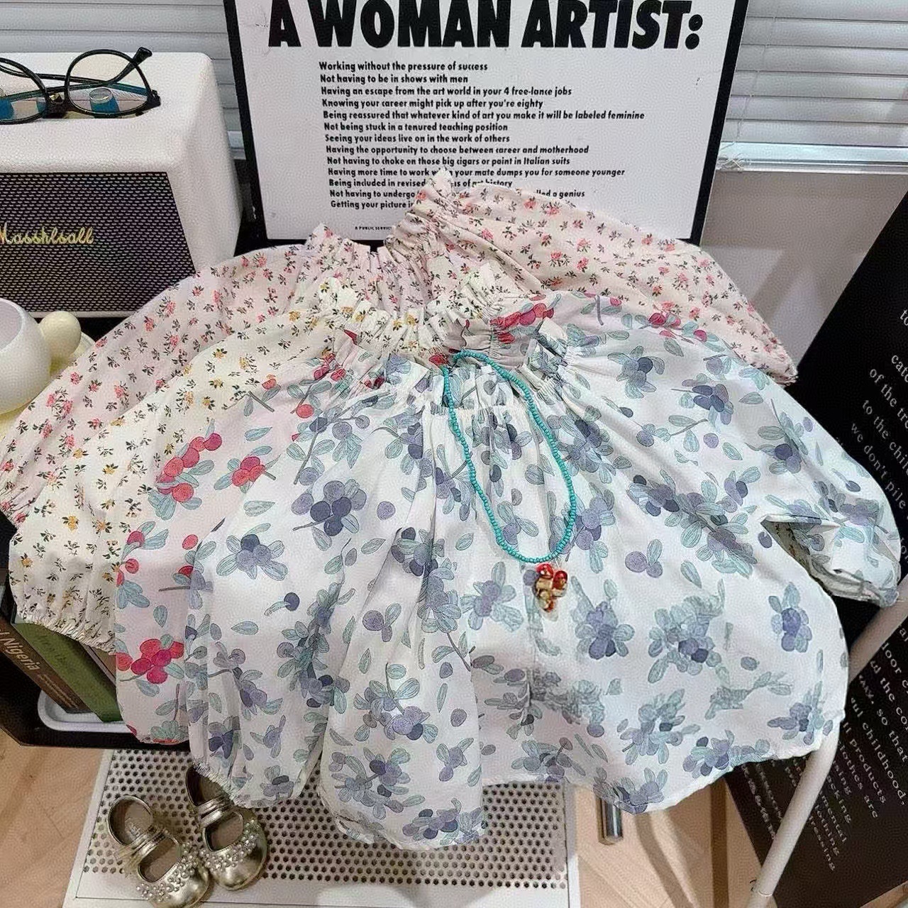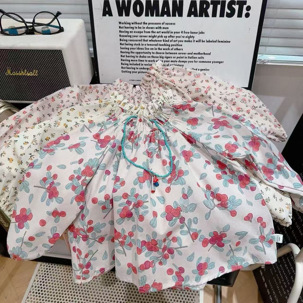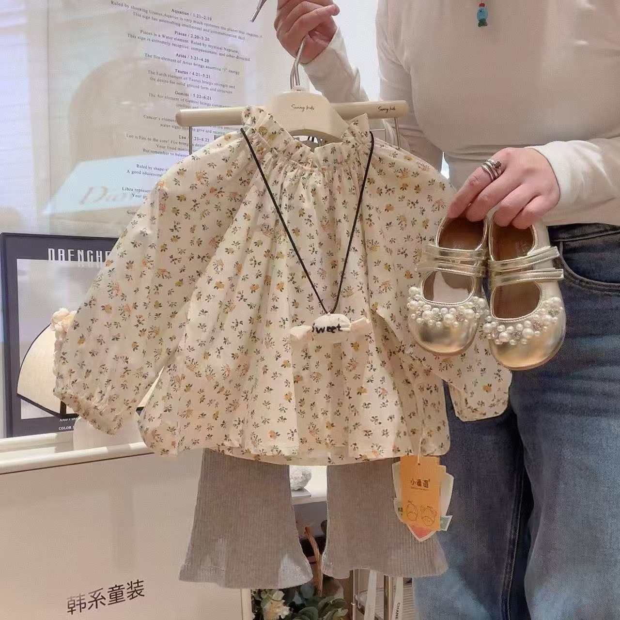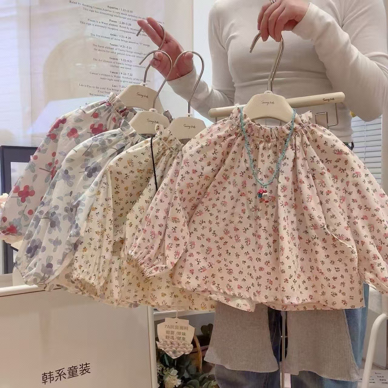아기 소녀 셔츠 꽃 인형 셔츠 2025 봄 새 여자 탑 목가적 인 스타일 셔츠스토어 가기