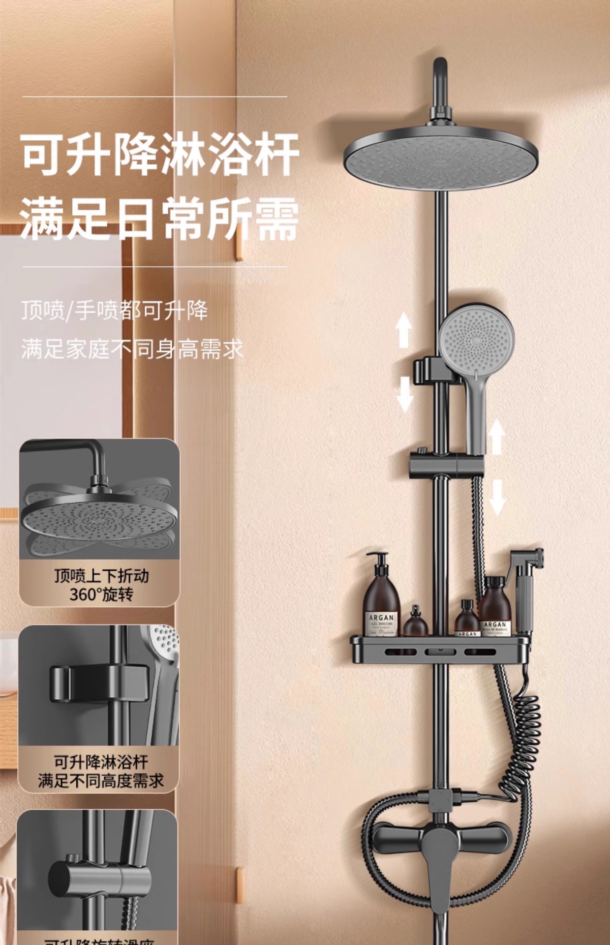 • [업그레이드 모델] 우아한 블랙 - 세련된 구리 4단 슈트