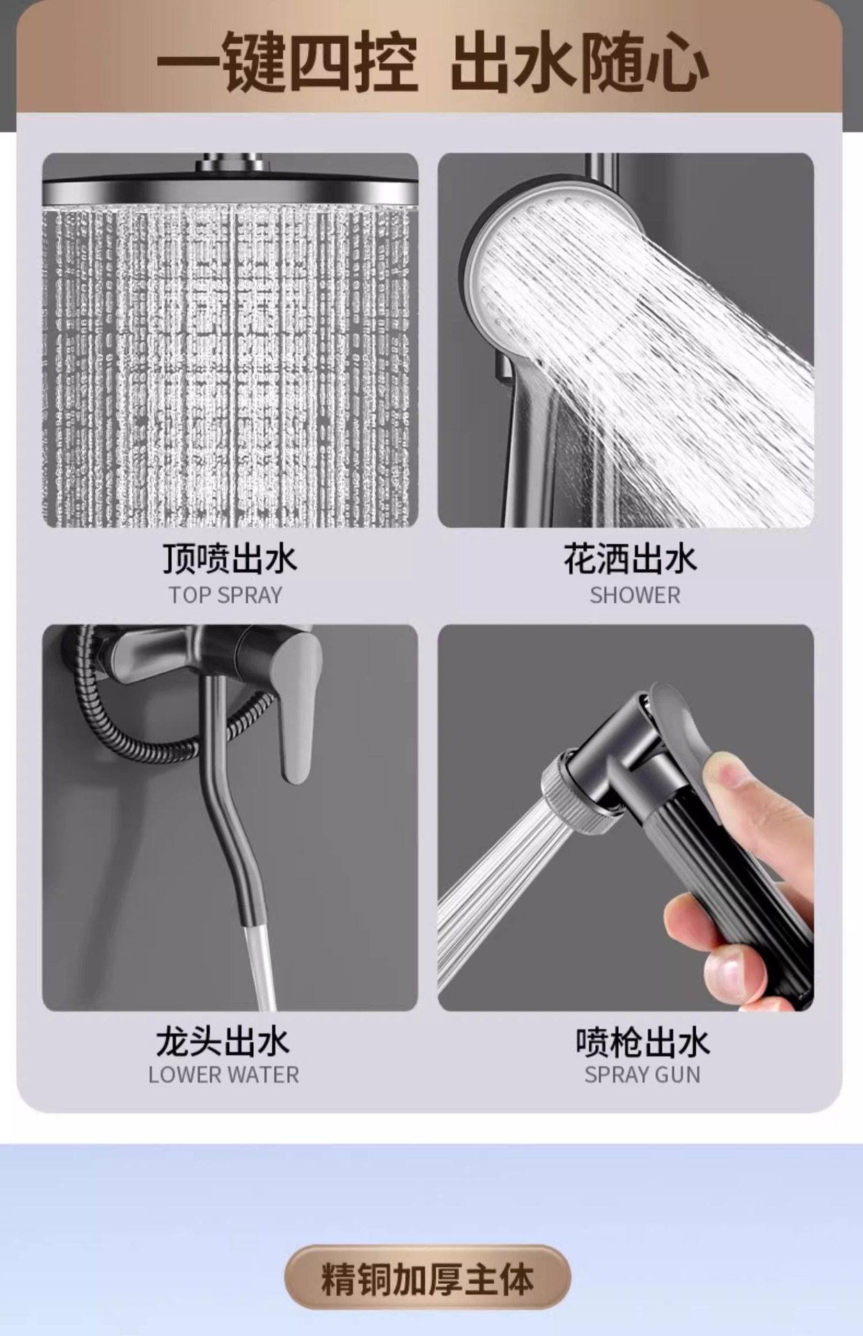 샤워기 세트, 간단한 숨겨진 욕실 세트, 샤워기, 고급 구리 샤워기 세트