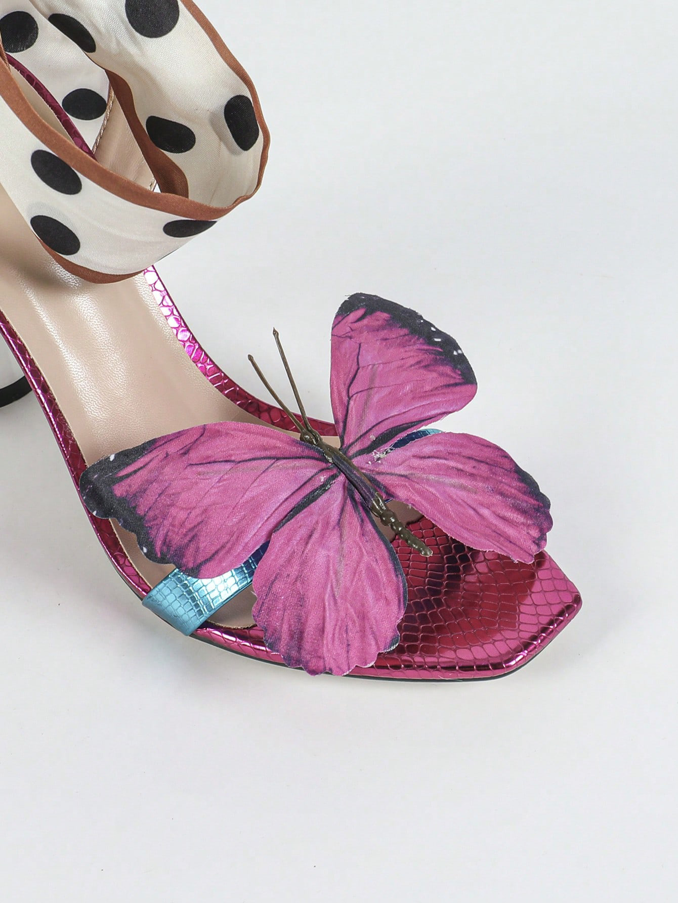 여성 하이힐 샌들 공장 직접 국경 대외 무역 심포니 나비 부드러운 리본 거울 뱀 패턴 우아한 여성 신발