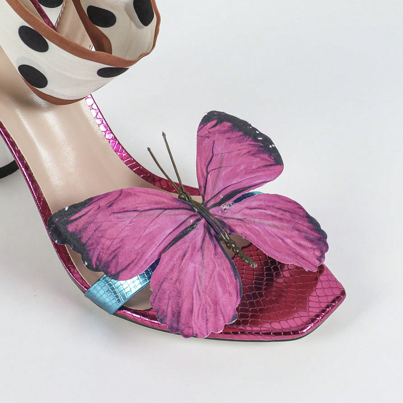 여성 하이힐 샌들 공장 직접 국경 대외 무역 심포니 나비 부드러운 리본 거울 뱀 패턴 우아한 여성 신발스토어 가기