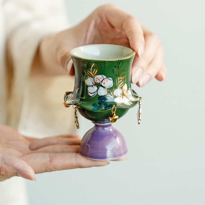 • 수제 에메랄드 순수 손으로 그린 ​​자스민 - 하이풋 우아한 컵(선물 상자)