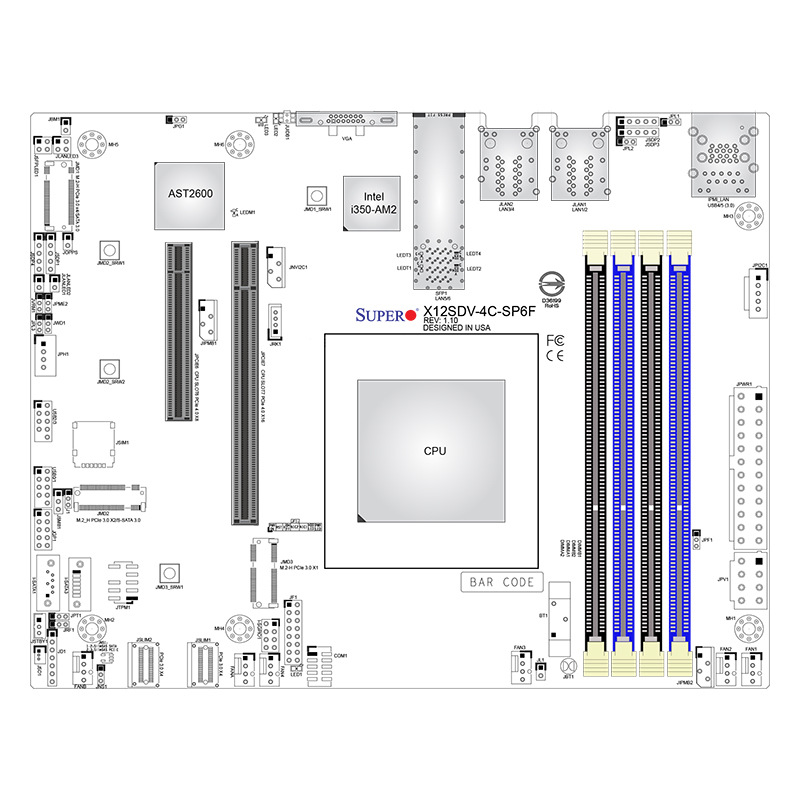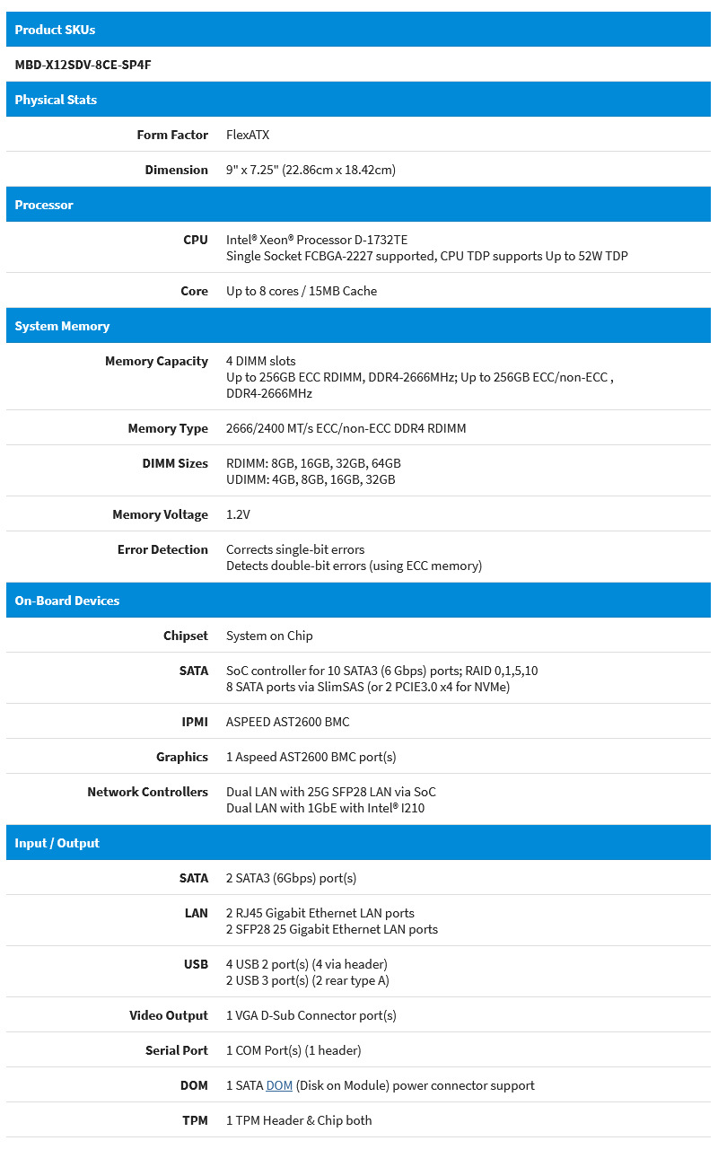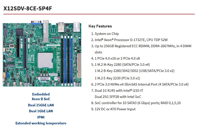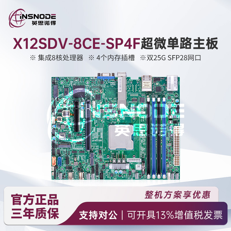 Supermicro X12SDV-8CE-SP4F 단일 채널 서버 마더보드는 8코어 CPU, 듀얼 25GSFP28 네트워크 포트 M.2를 통합합니다.스토어 가기