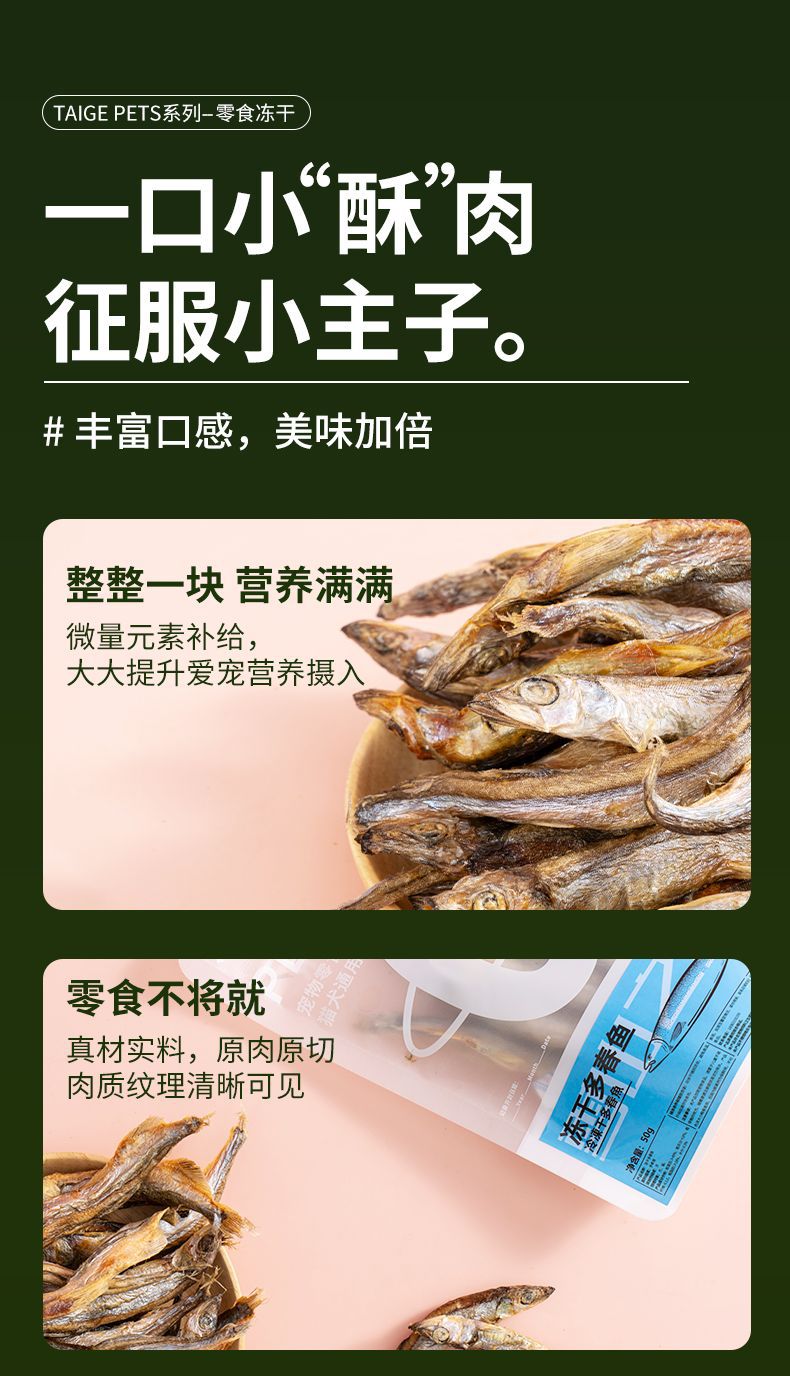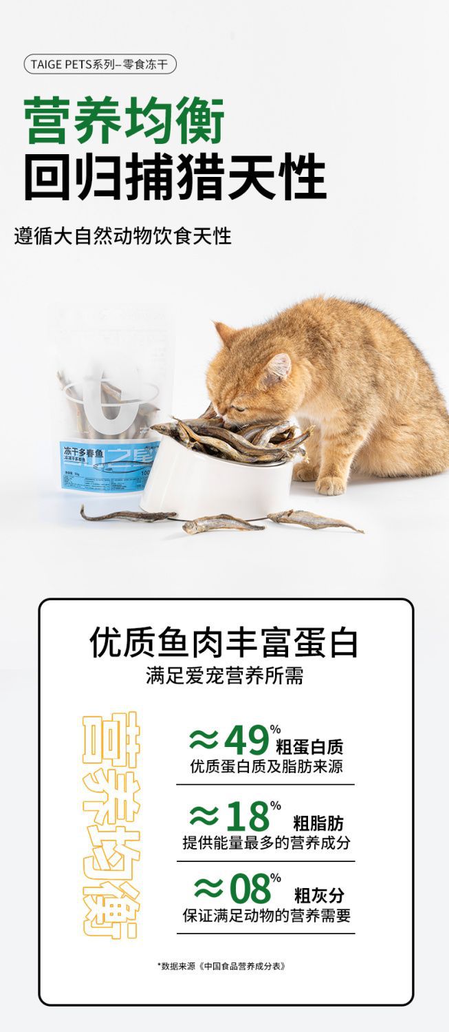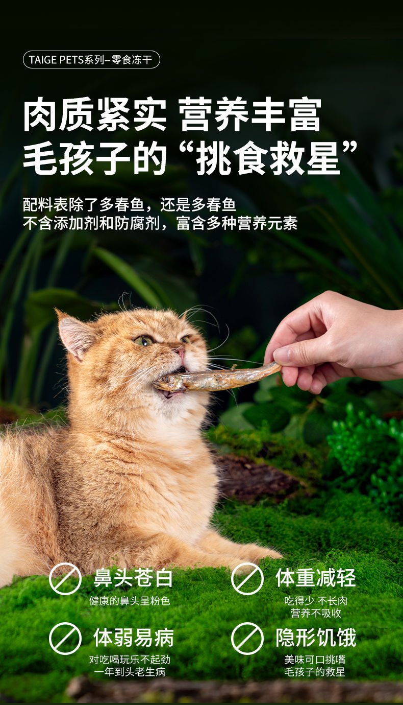 다초어 동결건조 애완고양이 간식, 작은 물고기의 성장과 발달을 위한 씨앗이 가득, 영양가득한 고양이 사료, 무염스토어 가기