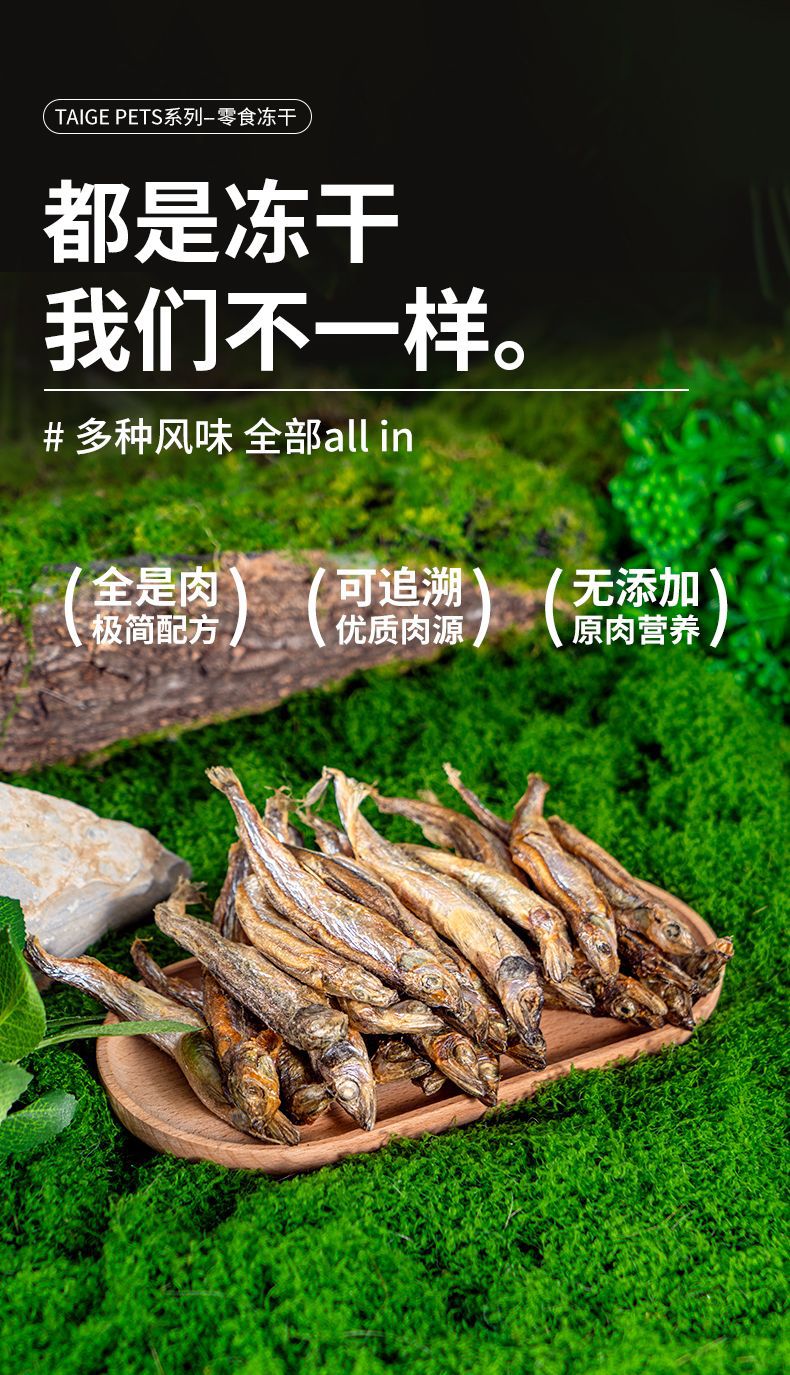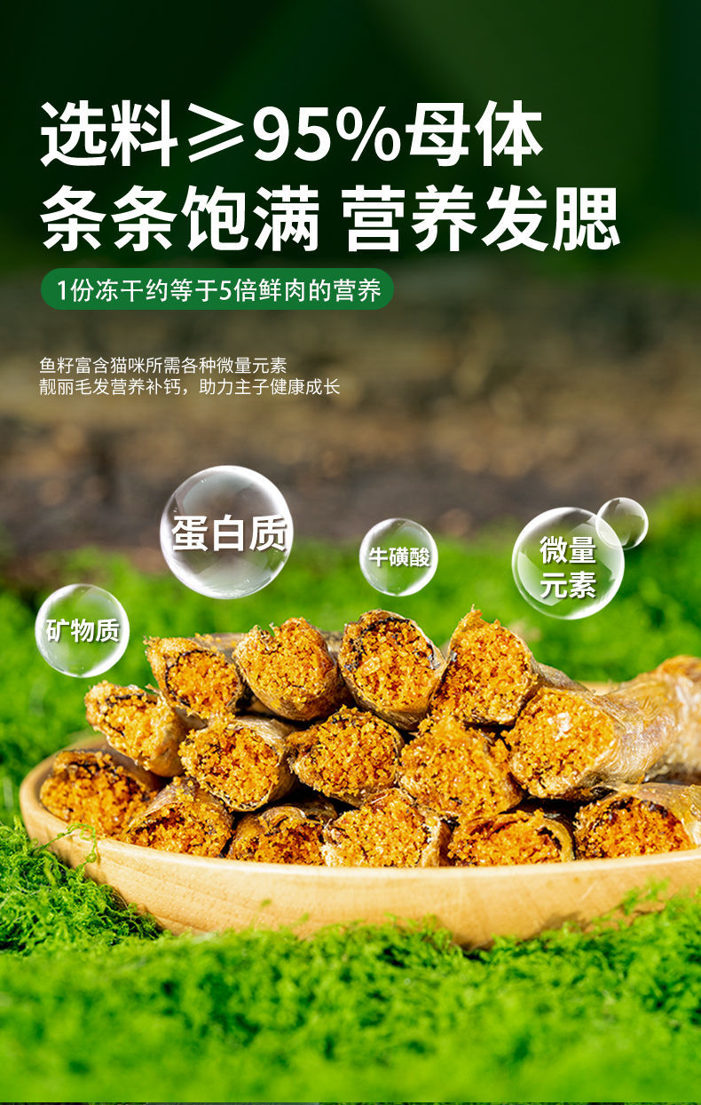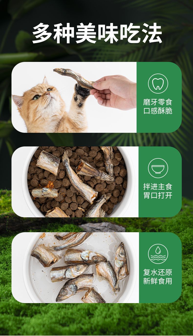 다초어 동결건조 애완고양이 간식, 작은 물고기의 성장과 발달을 위한 씨앗이 가득, 영양가득한 고양이 사료, 무염스토어 가기