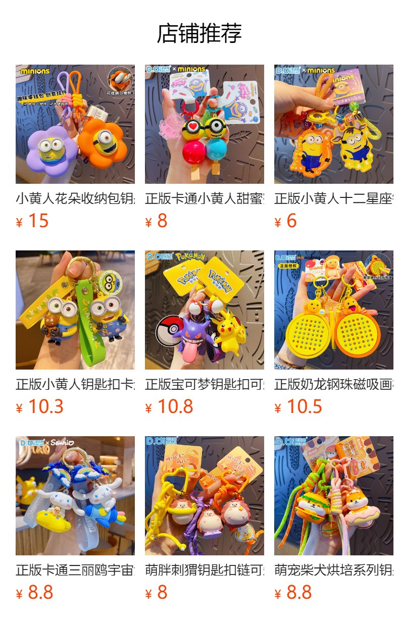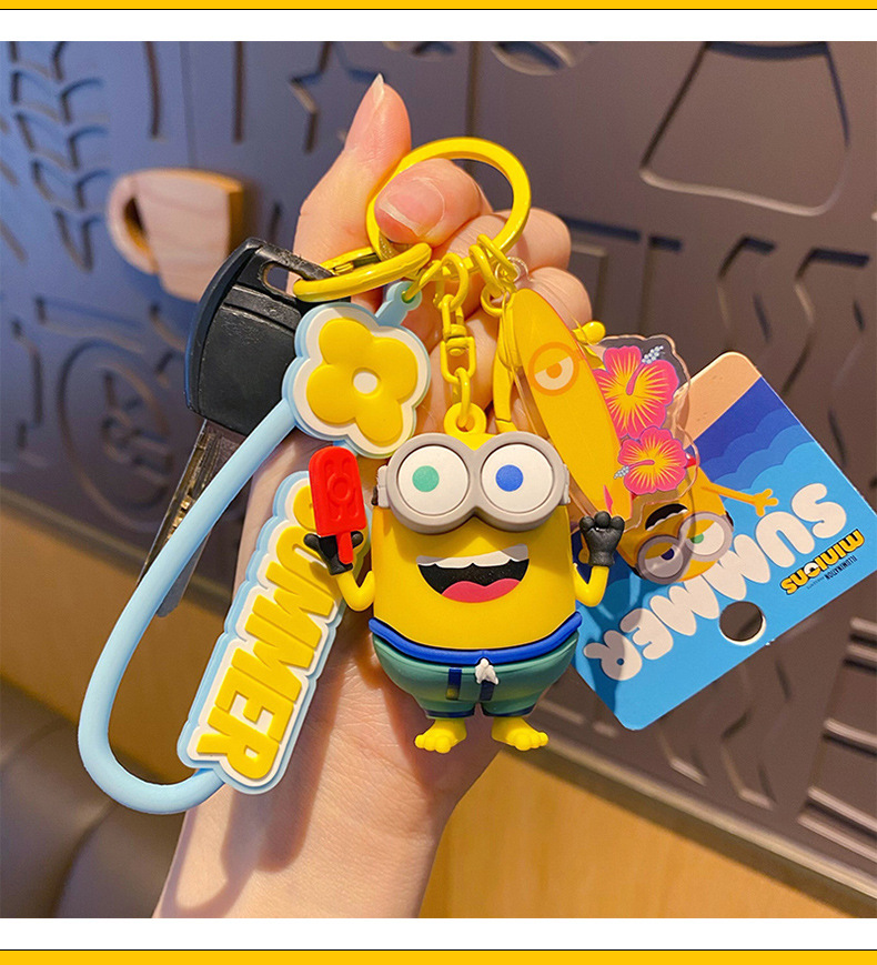 정품 미니언 여름 시간 키 체인 귀여운 바우어 패션 크리에이티브 카 키 액세서리 스쿨백 펜던트스토어 가기