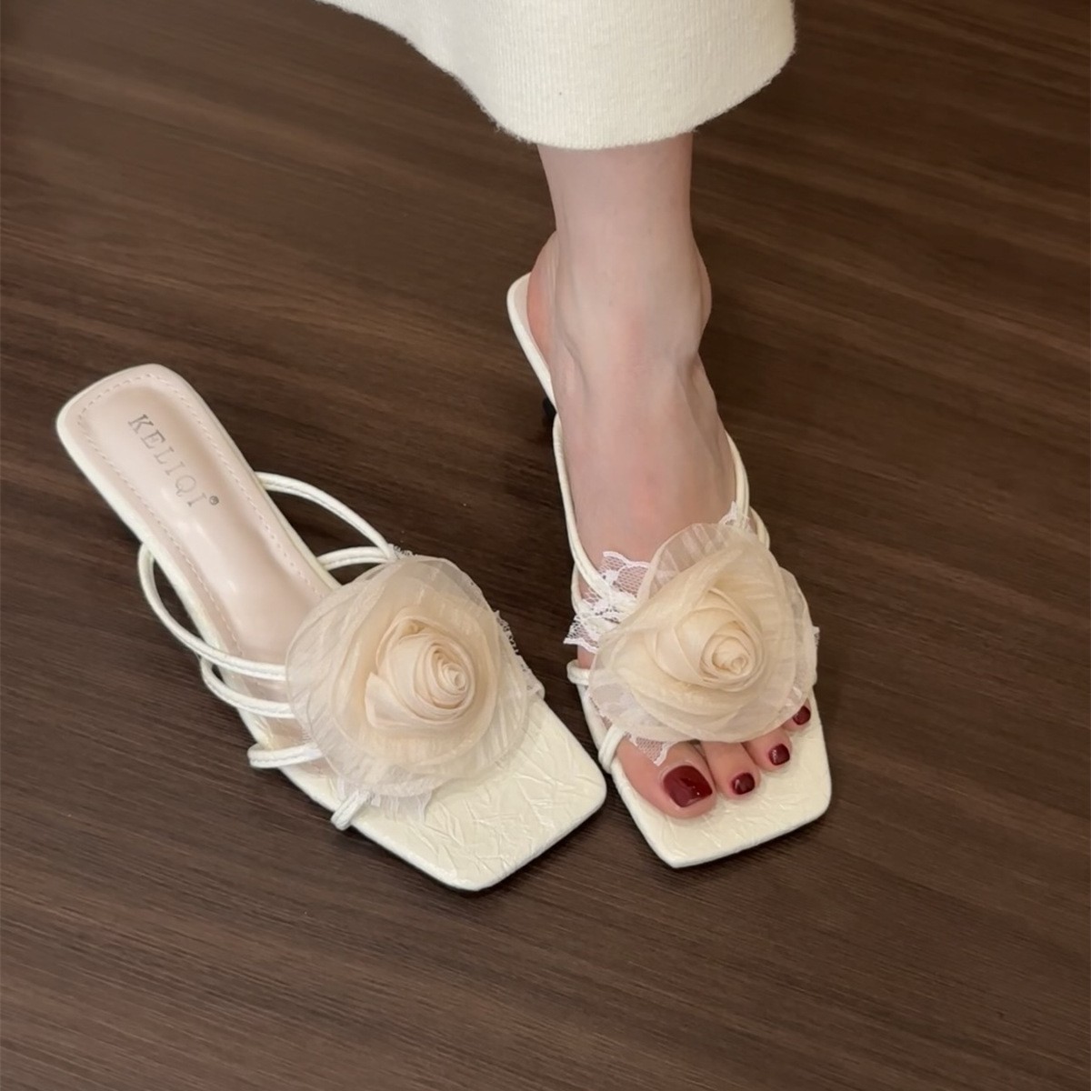 스커트와 함께 착용할 웨지옐로우 플라워 프렌치 샌들, 아우터용 페어리슈즈, 2025년 신상 여름 오픈토 샌들