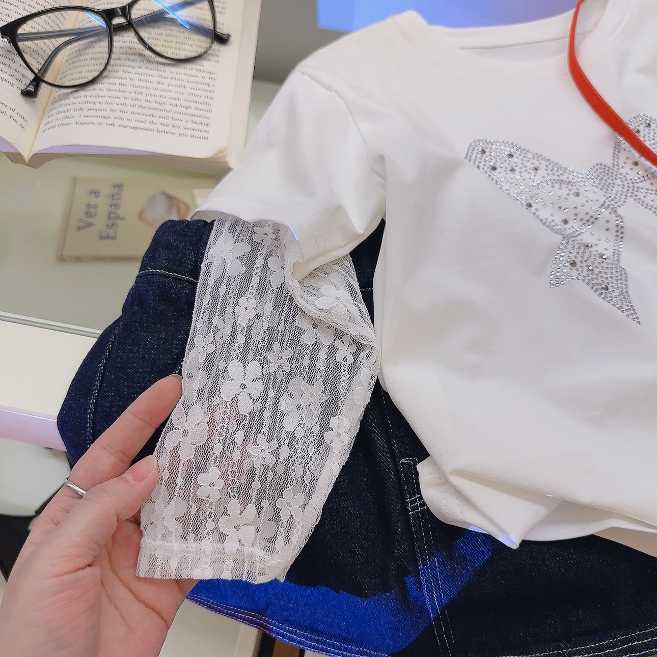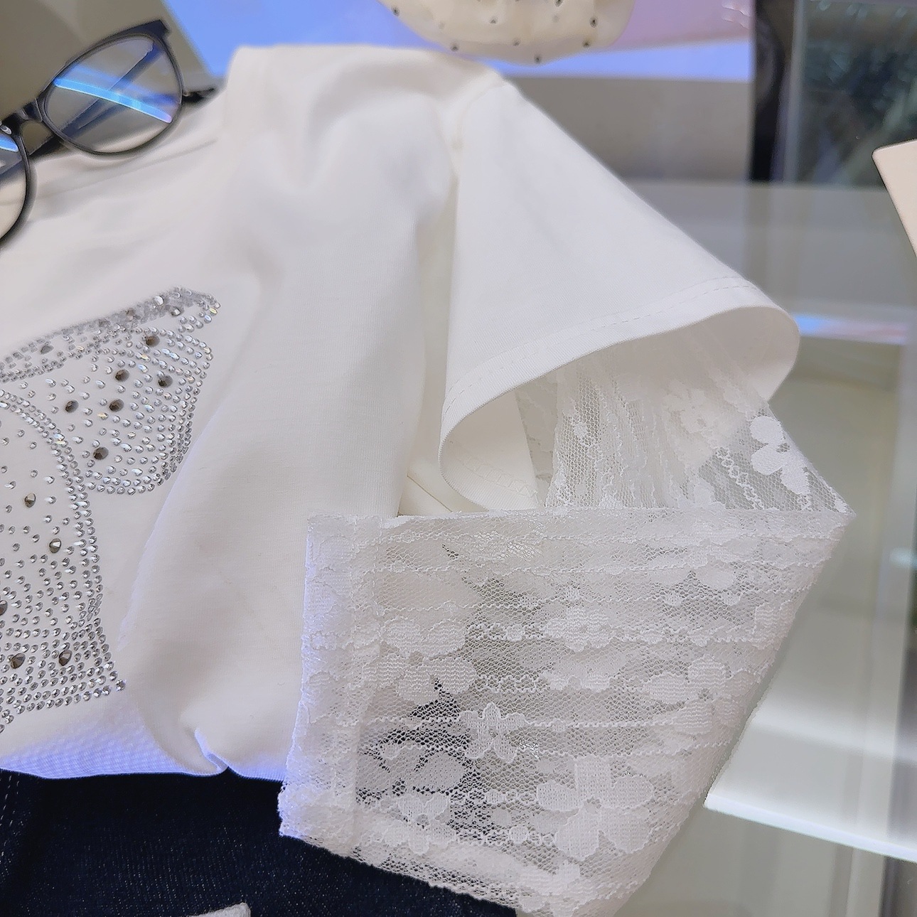 여름 신상 입체 핫 다이아몬드 레이스 아이스 슬리브 반팔 한국 스타일 캐주얼 티셔츠 가짜 투피스 원피스 드롭 배송스토어 가기