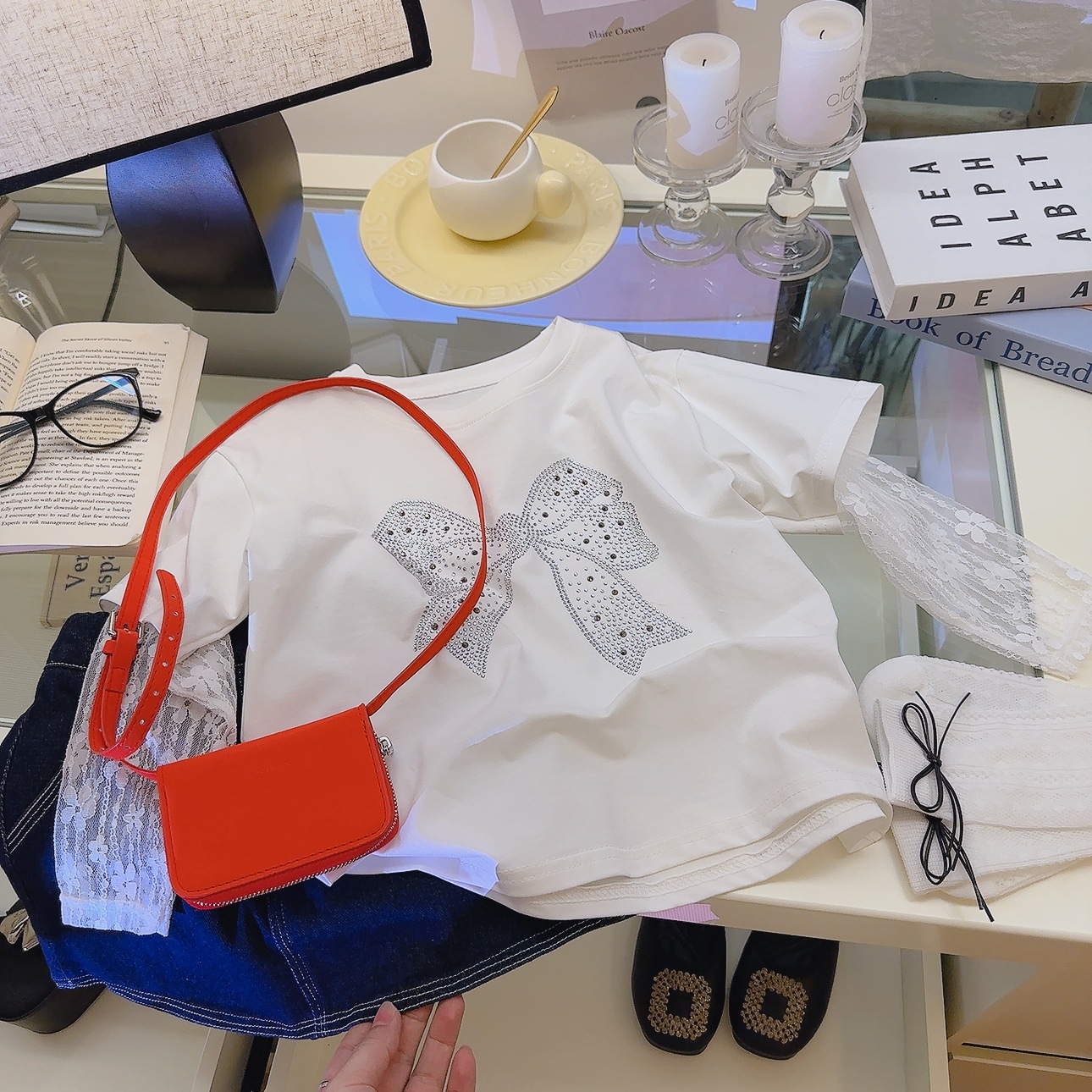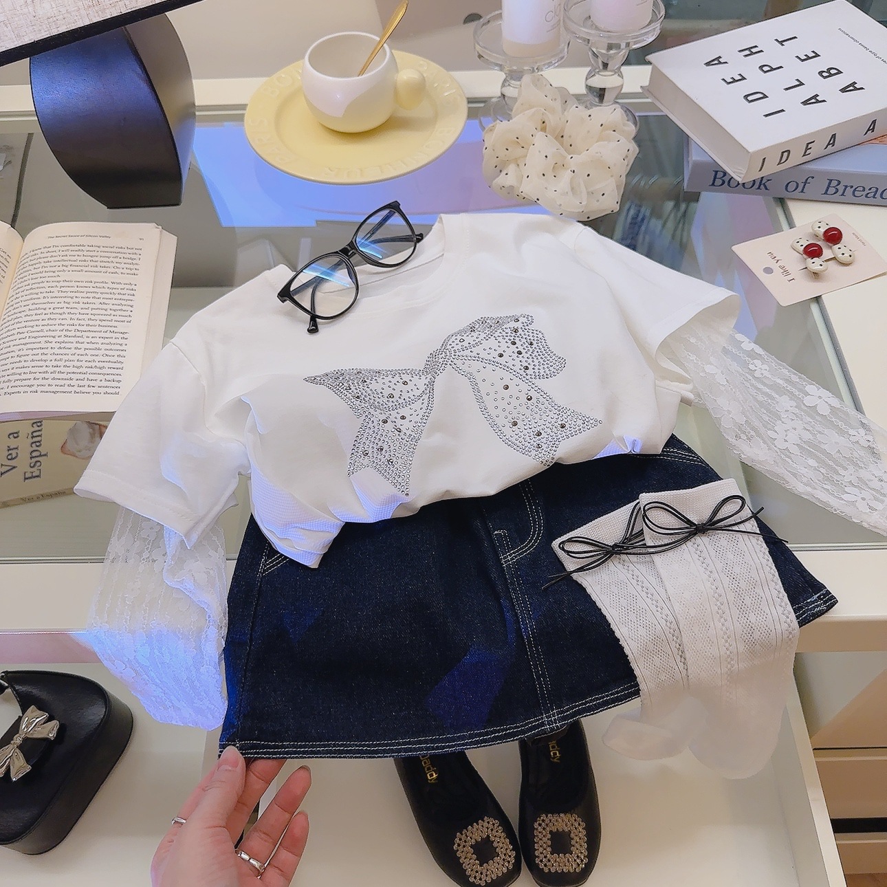 • 화이트 T [보타이 핫 다이아몬드 + 레이스 슬리브]