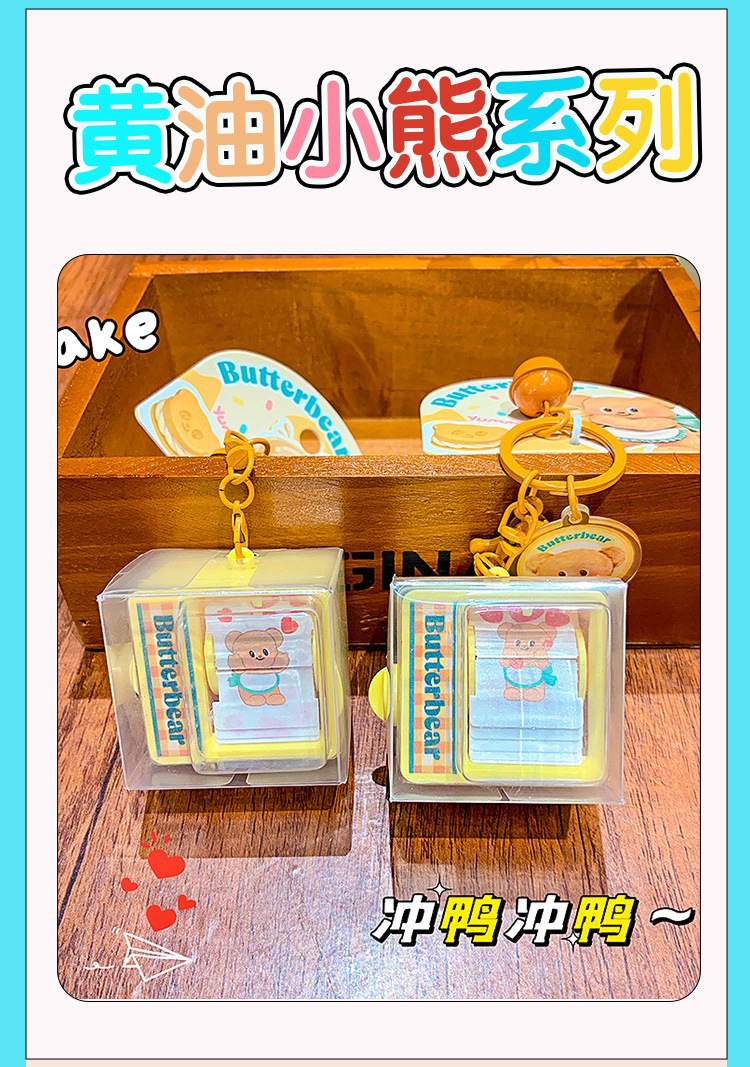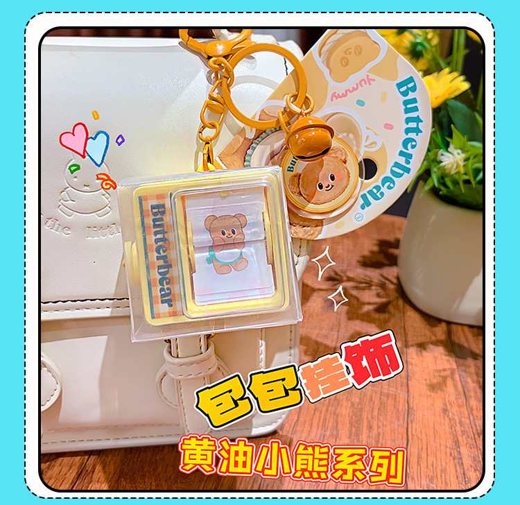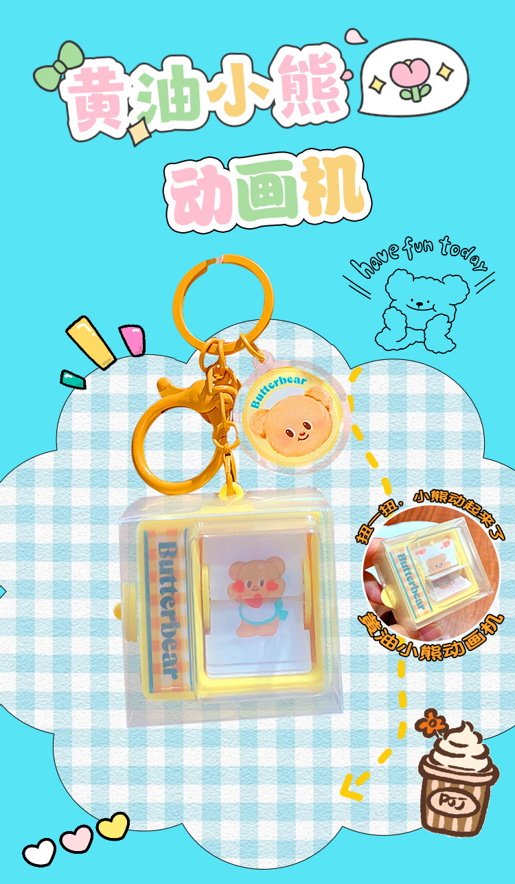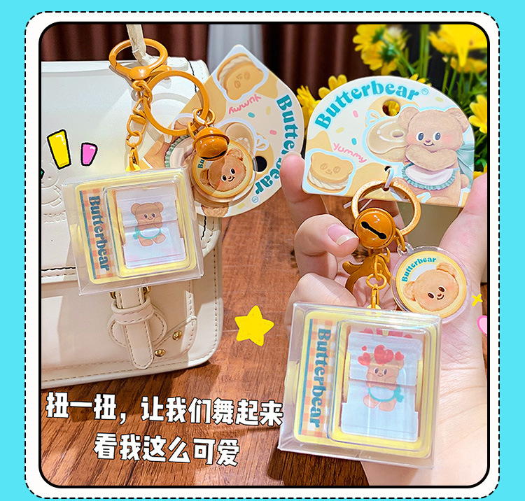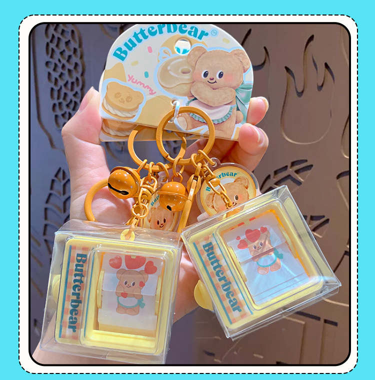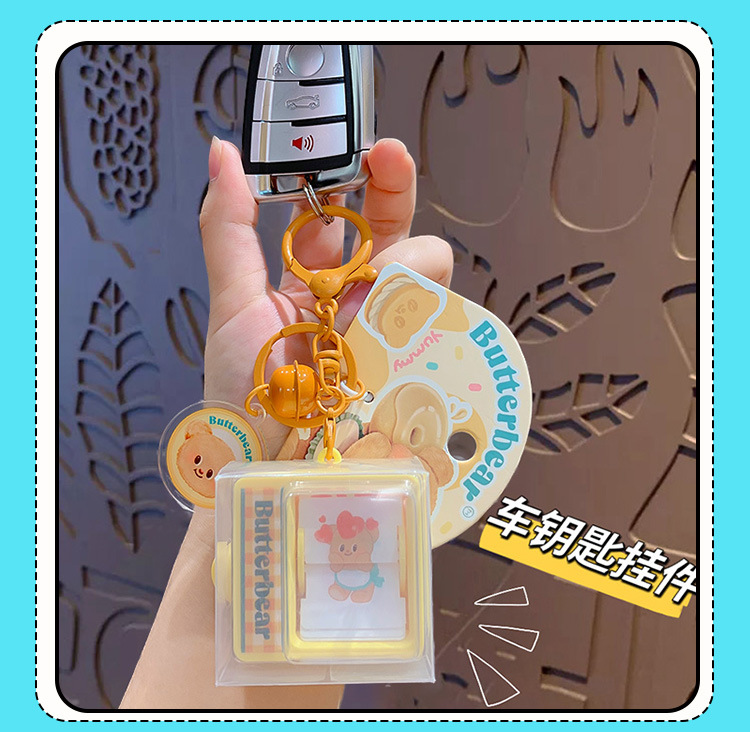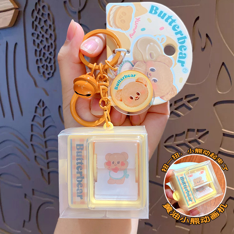 정품 만화 버터 곰 플립 애니메이션 기계 키 체인 여성의 귀여운 가방 자동차 펜던트 키 체인 선물스토어 가기