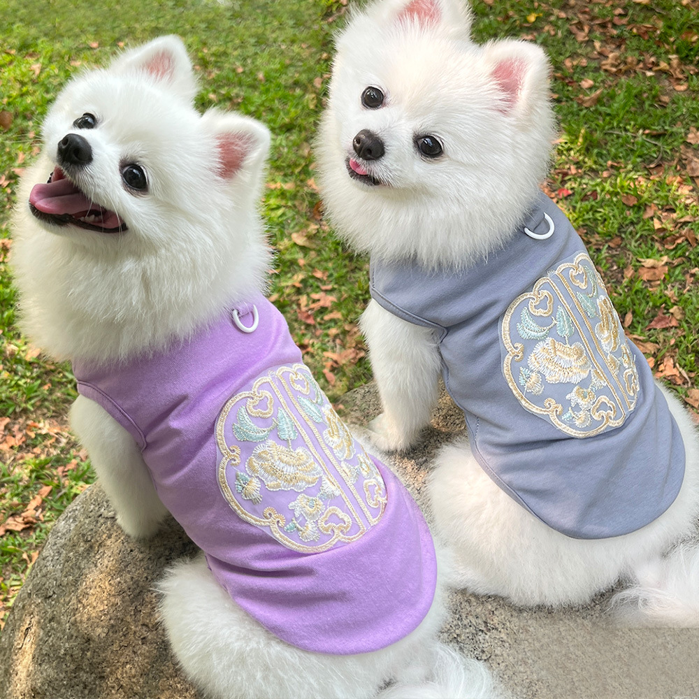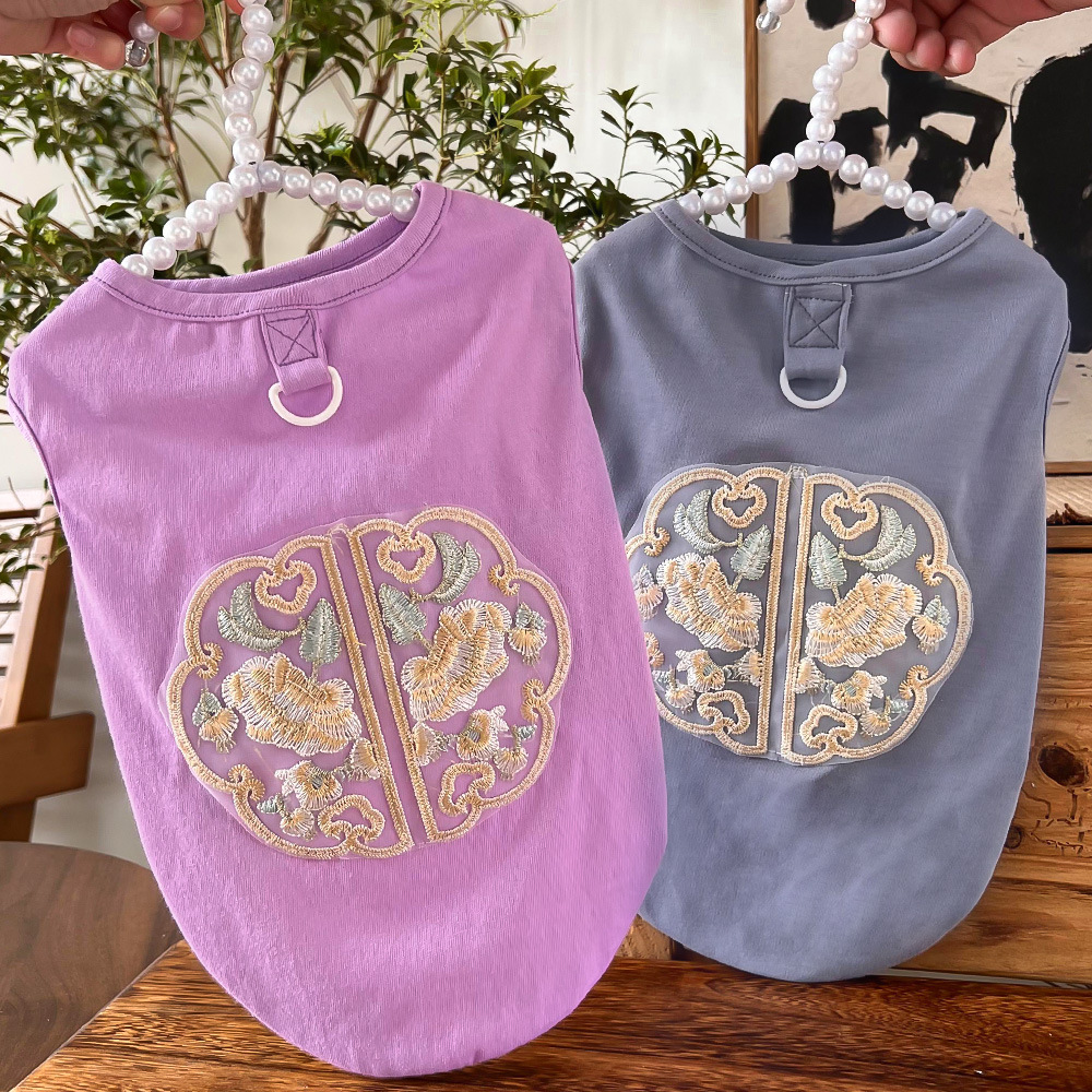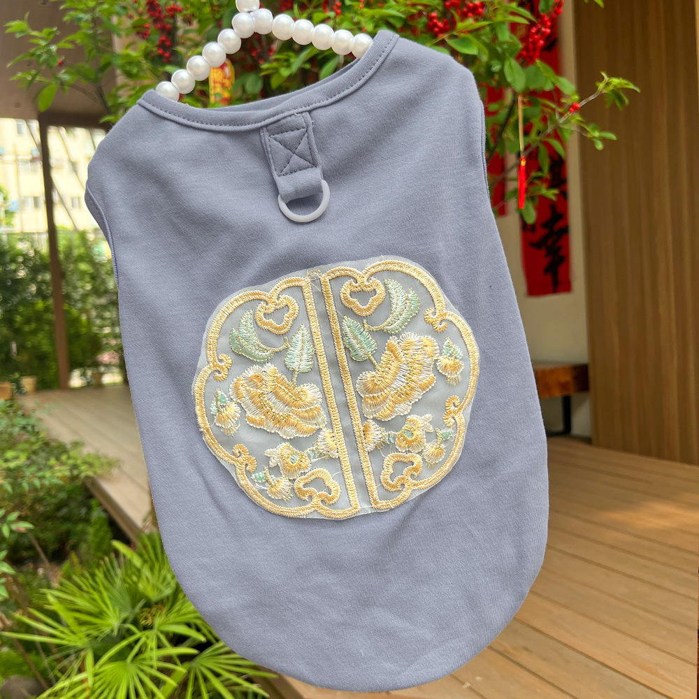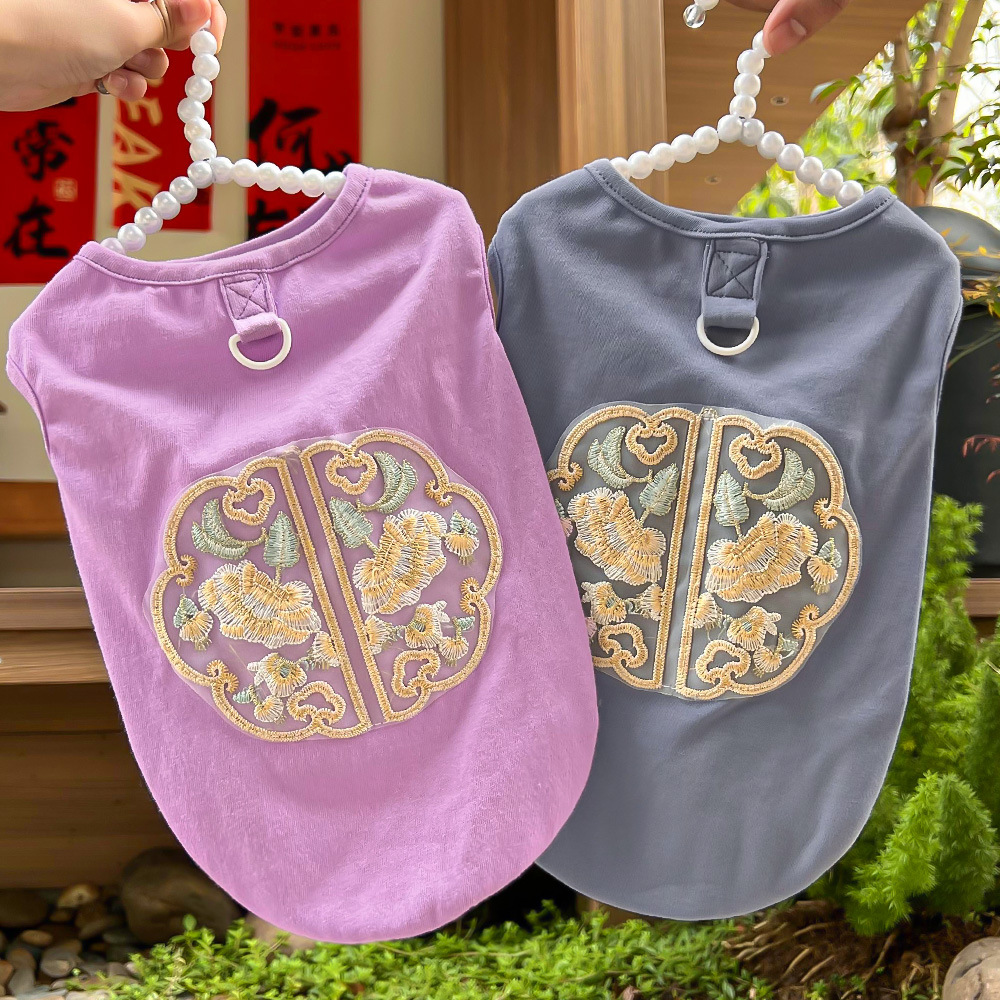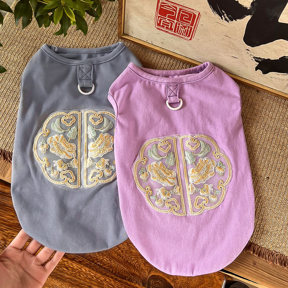 새로운 중국 스타일 애완 동물 강아지 조끼 고양이 의류 용품 봄과 여름 테디 비숑 티셔츠 프랑스 도매 면화스토어 가기