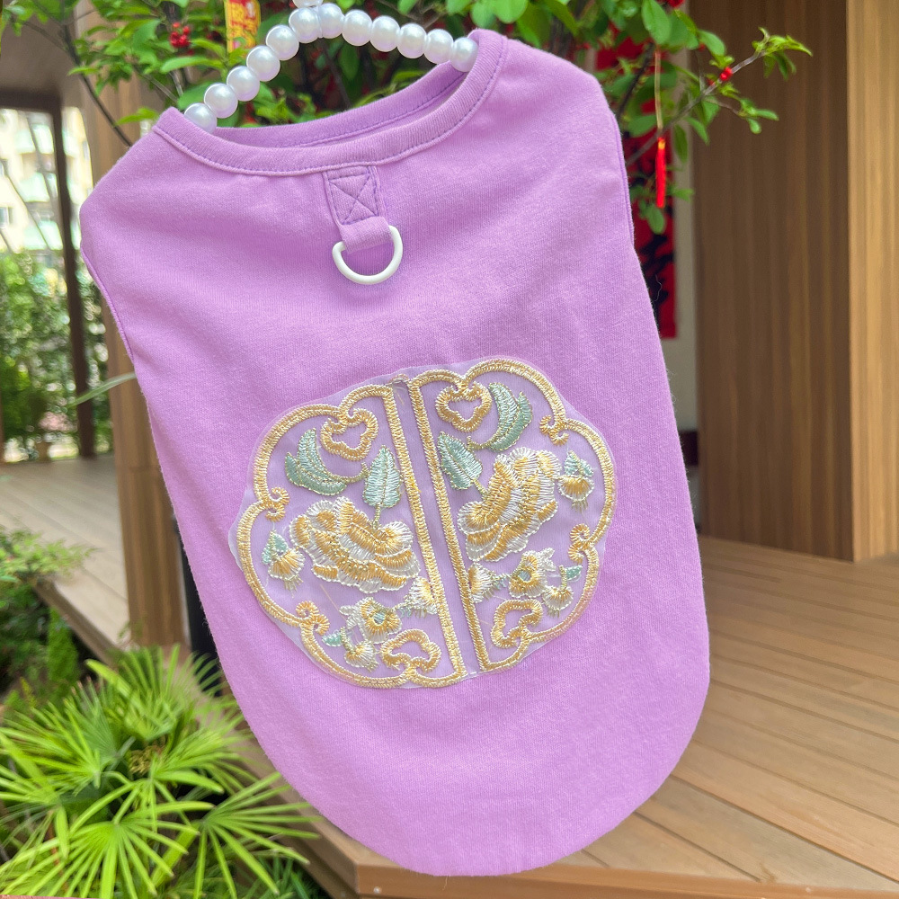 새로운 중국 스타일 애완 동물 강아지 조끼 고양이 의류 용품 봄과 여름 테디 비숑 티셔츠 프랑스 도매 면화
