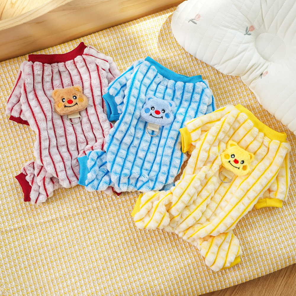 귀여운 곰 가정복 따뜻한 만화 애완 동물 옷 개 고양이 중형 개 네 발 옷 테디 프렌치 가을 겨울스토어 가기