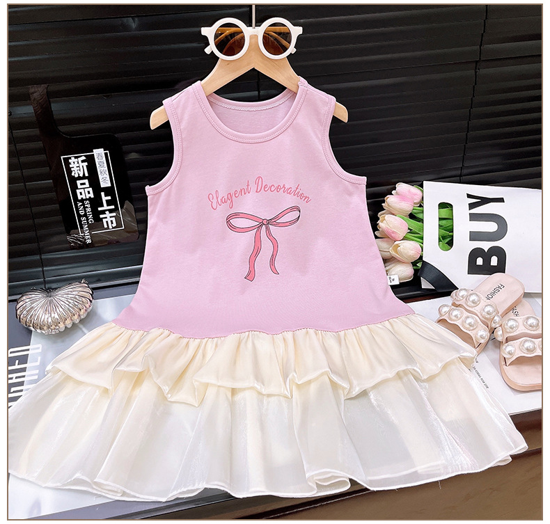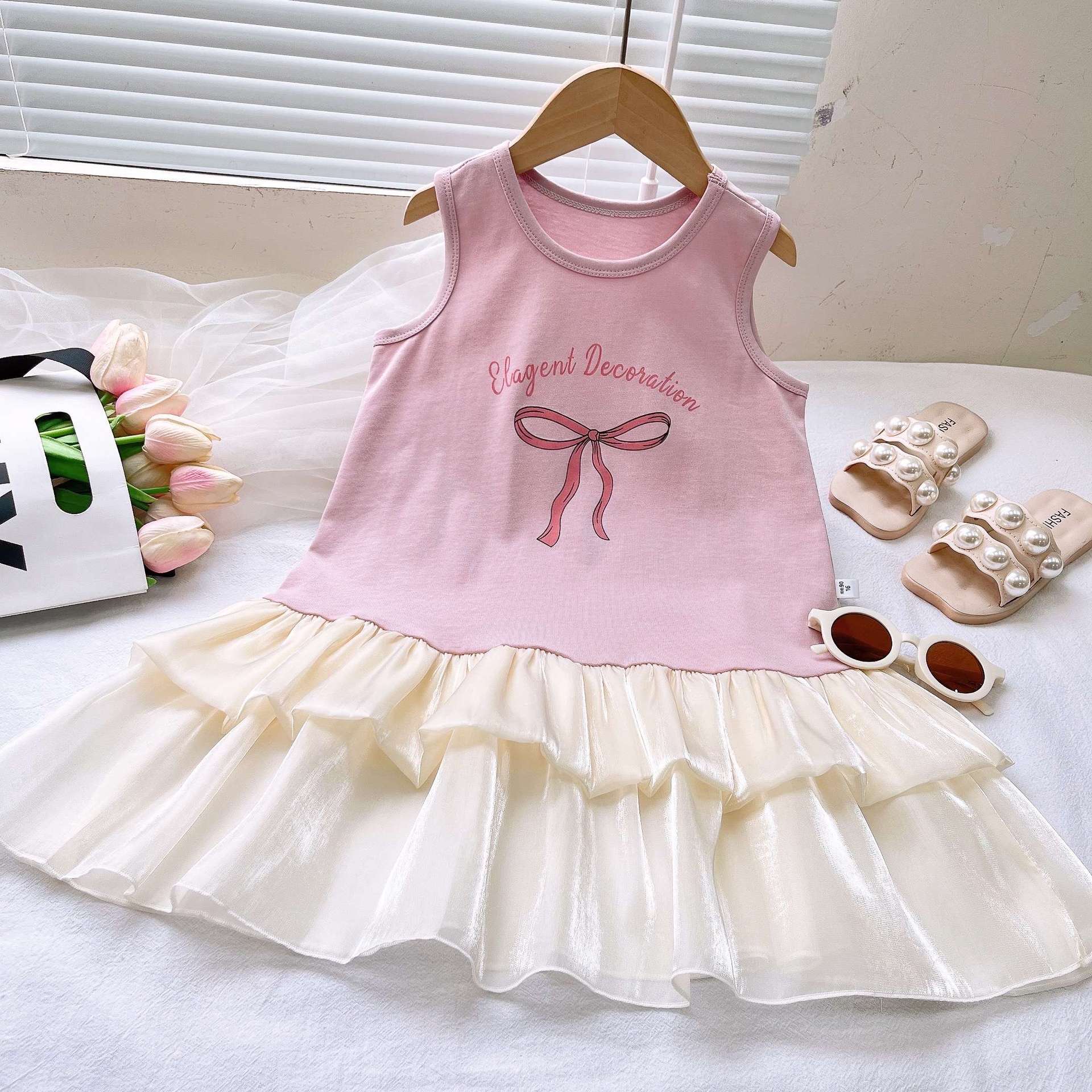 2025 여름 새로운 어린이 활 조끼 원피스 어린이 여름 원피스 소녀 서양식 거즈 꼬리 원피스스토어 가기