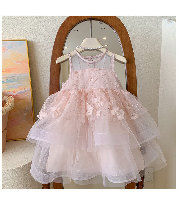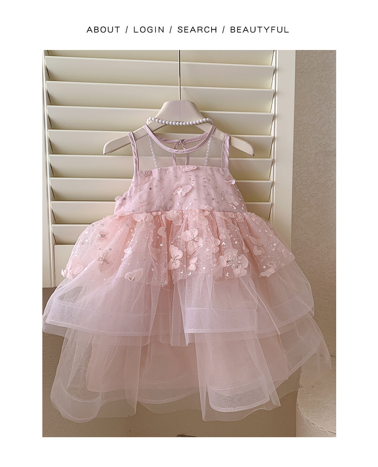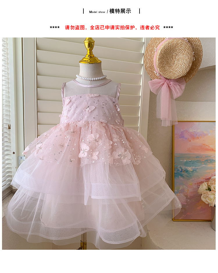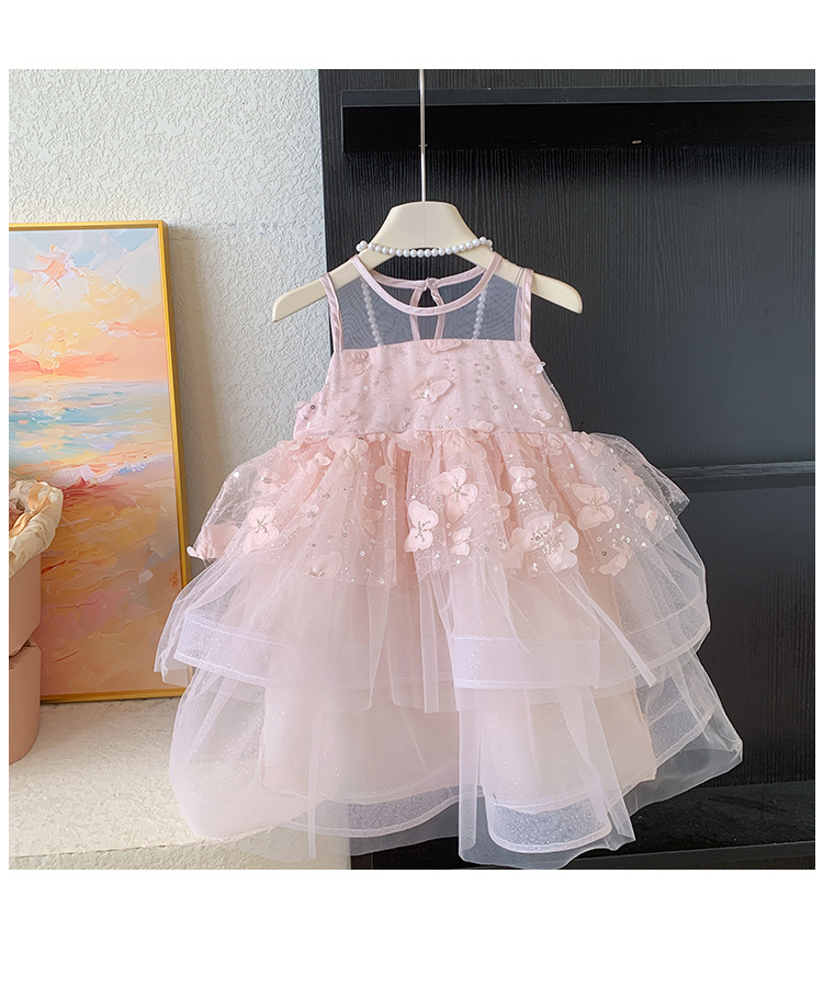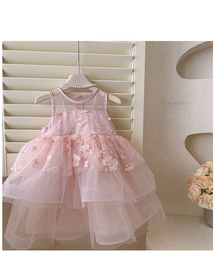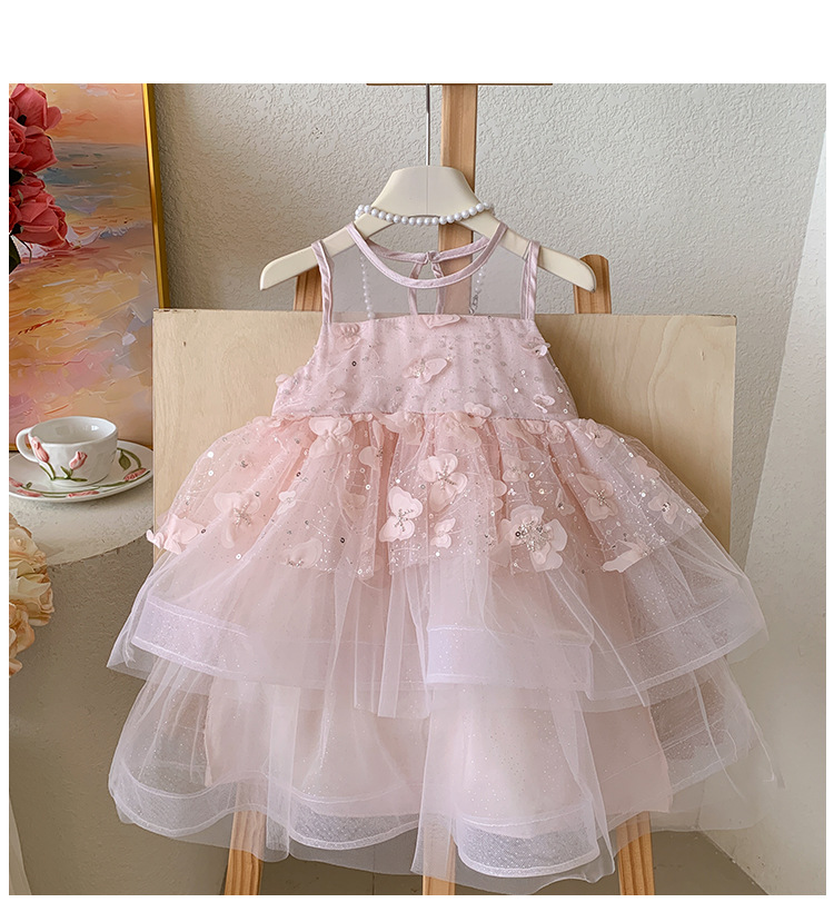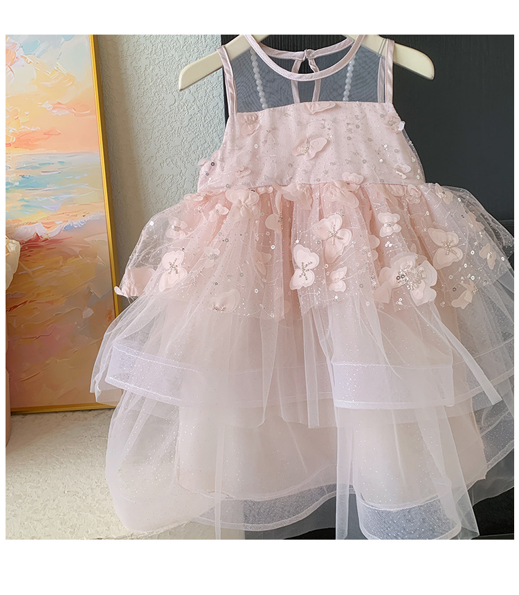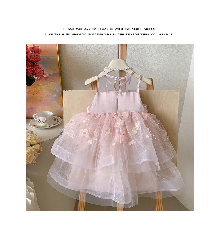 2025 여름 새 소녀 공주 원피스 입체 나비 메쉬 조끼 어린이 원피스 원피스 슈퍼 요정