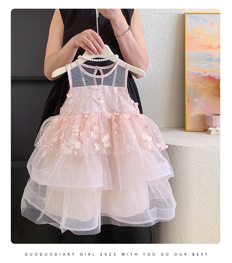 2025 여름 새 소녀 공주 원피스 입체 나비 메쉬 조끼 어린이 원피스 원피스 슈퍼 요정스토어 가기