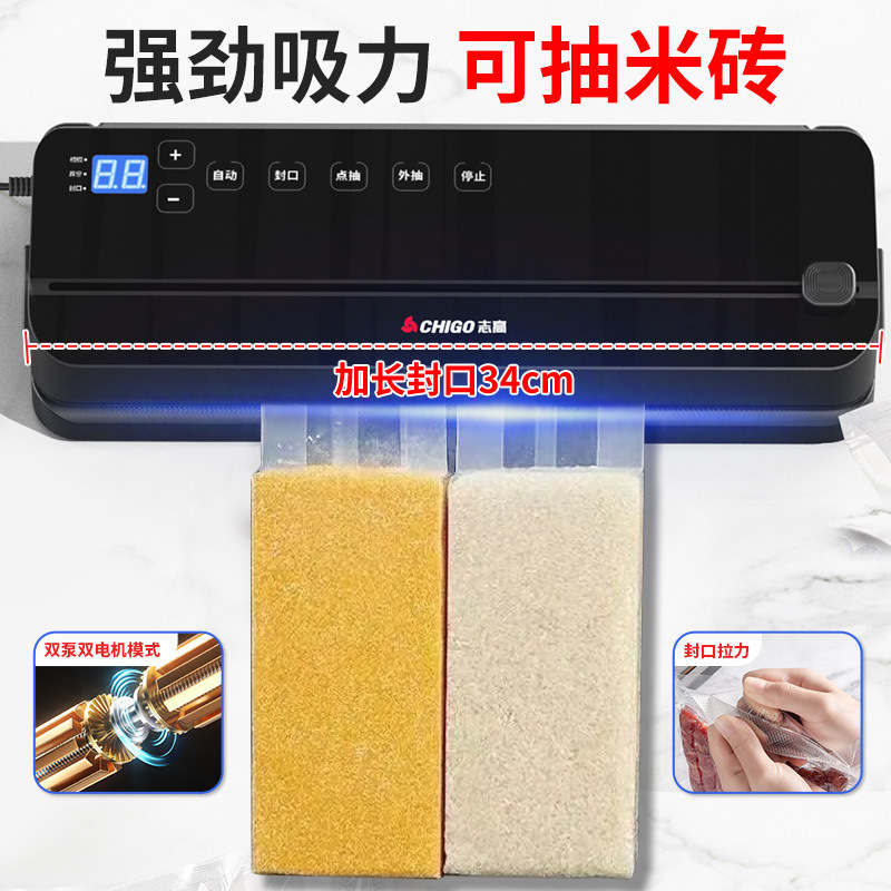 Chigo 완전 자동 진공 밀봉 일체형 기계 대형 흡입 상업용 밀봉 기계 가정용 신선 유지 식품 포장 주방스토어 가기