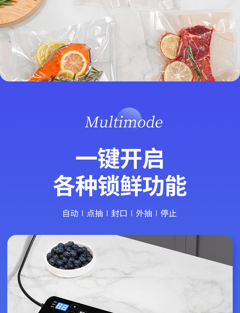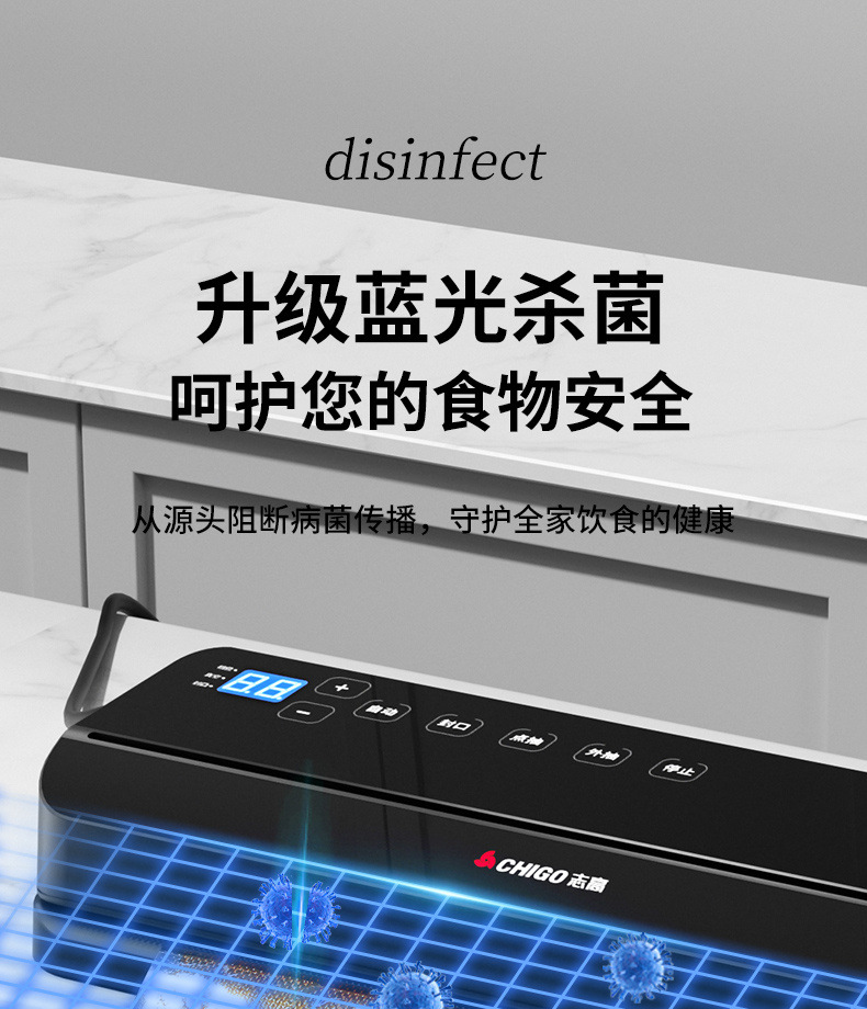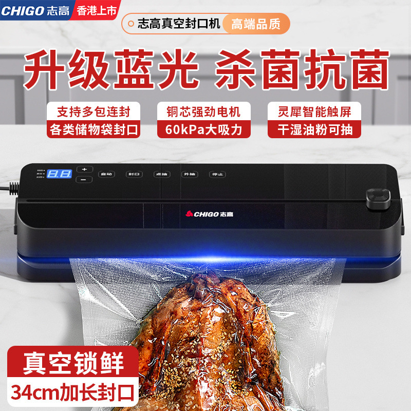 • Chigo 정품 [단일 펌프 + 60Kpa 흡입] 5MM 씰링 스트립 - 34CM 씰링 [블루라이트 살균 + 온도 조절] 외부 펌핑 + 120 봉지