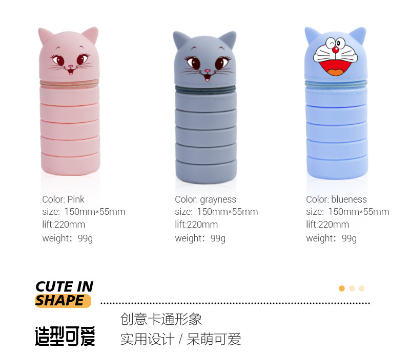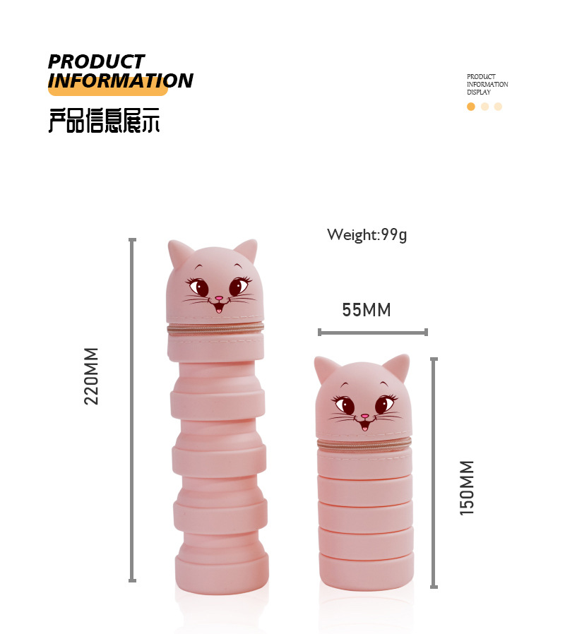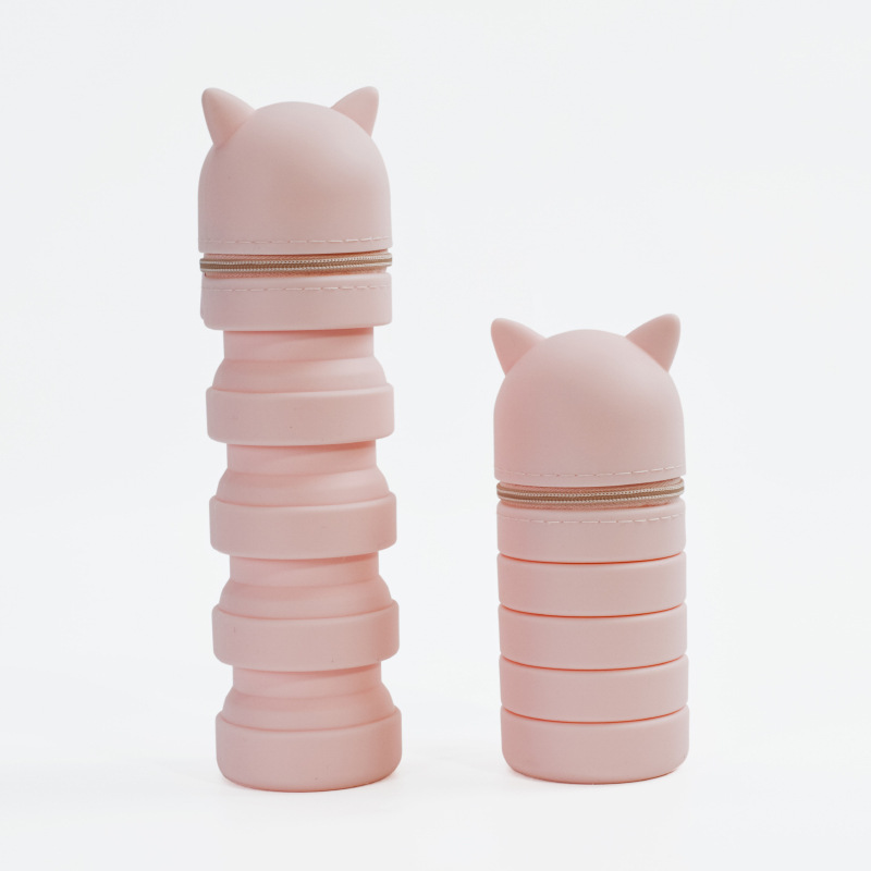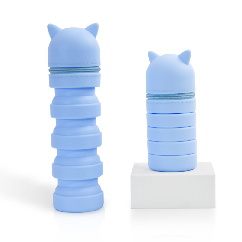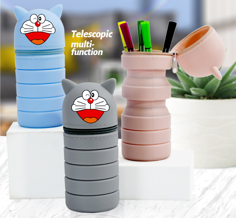 국경 간 실리콘 텔레스코픽 펜 홀더 만화 귀여운 접는 펜 홀더 크리 에이 티브 학생 스트레스 릴리프 실리콘 펜 가방 편지지 상자