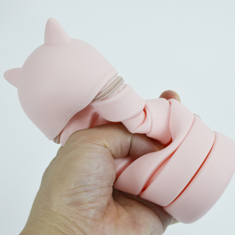 국경 간 실리콘 텔레스코픽 펜 홀더 만화 귀여운 접는 펜 홀더 크리 에이 티브 학생 스트레스 릴리프 실리콘 펜 가방 편지지 상자스토어 가기