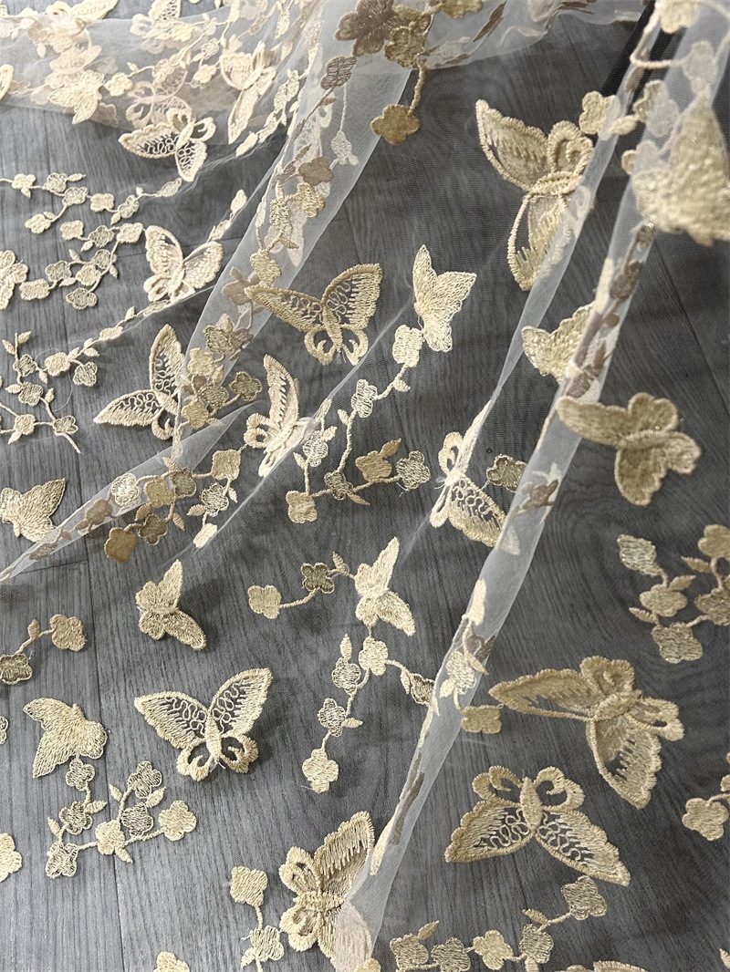 나비 메쉬 자수 원단 여성 스커트 소녀 거즈 스커트 입체 자수 원단 봄과 여름 얇은 레이스 자수 원단스토어 가기