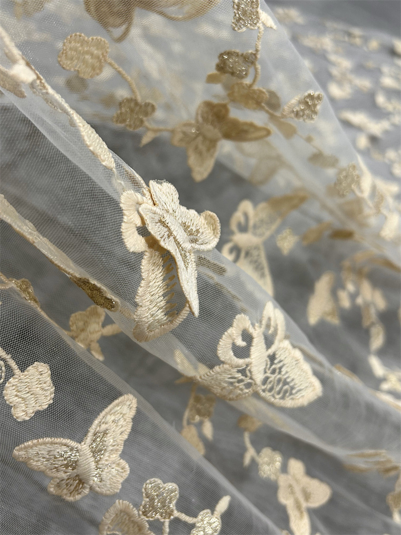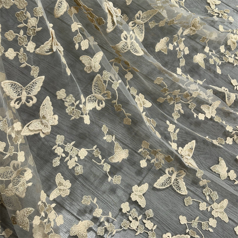 나비 메쉬 자수 원단 여성 스커트 소녀 거즈 스커트 입체 자수 원단 봄과 여름 얇은 레이스 자수 원단