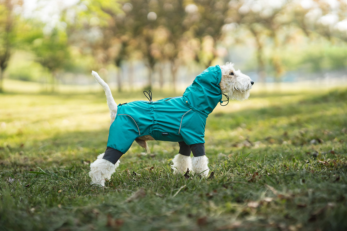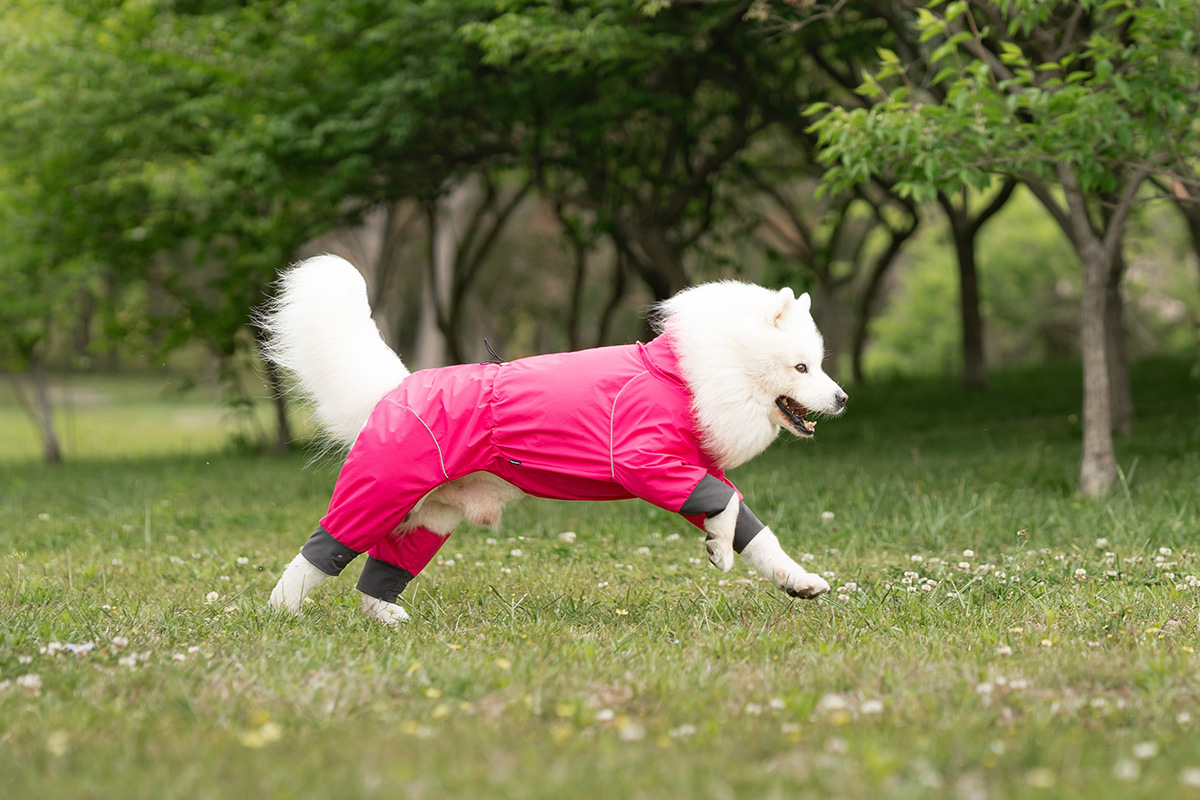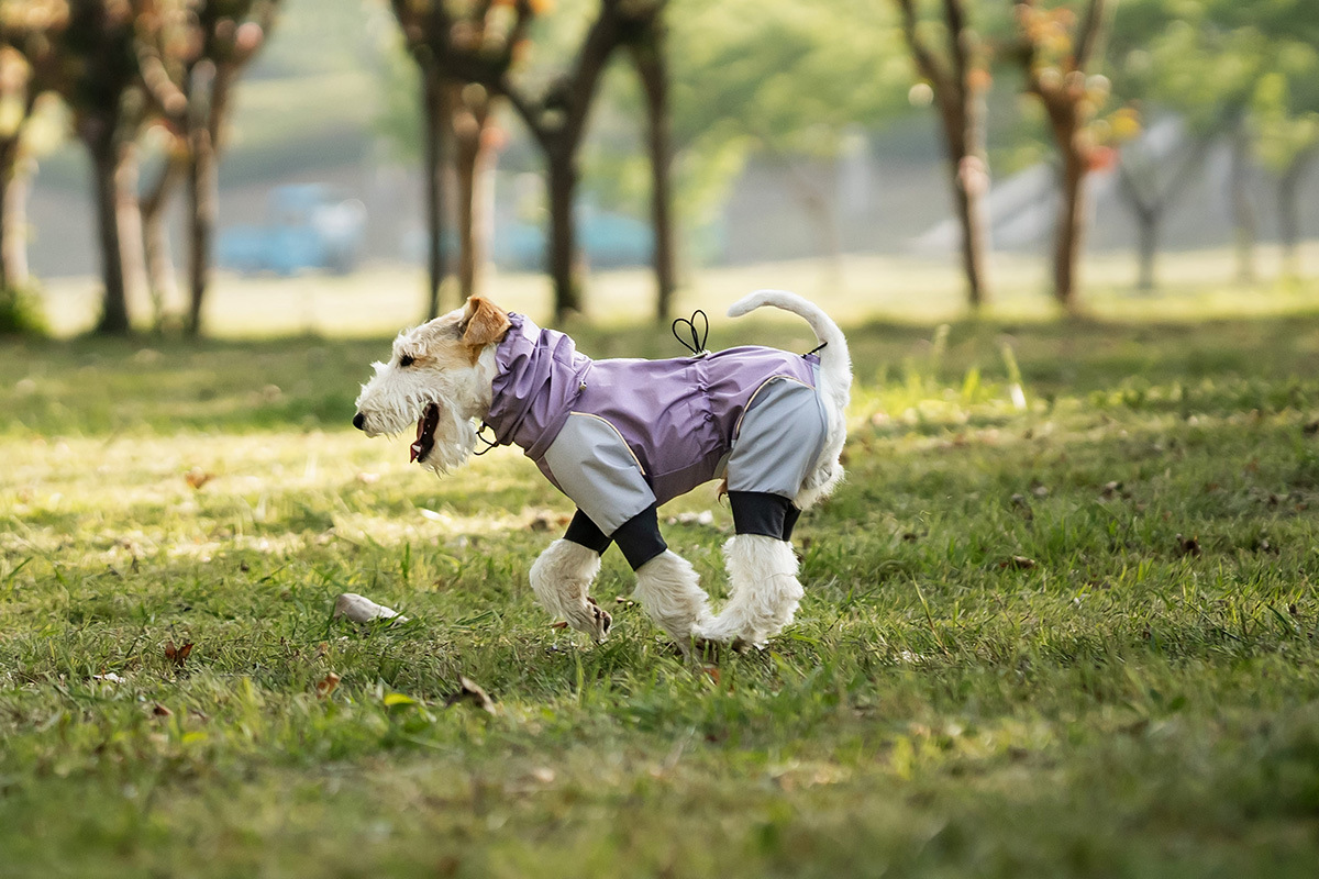 개 비옷 네 다리 모든 것을 포함하는 견인 방수 러쉬 탑 기관차 산 스타일 중소 개 애완 동물 옷