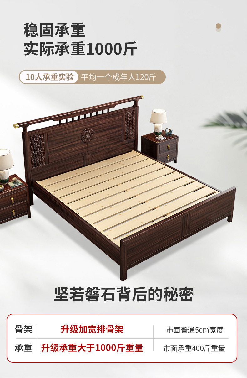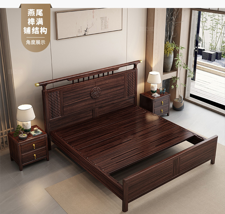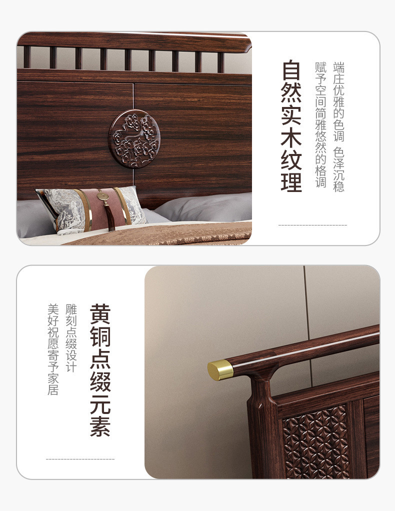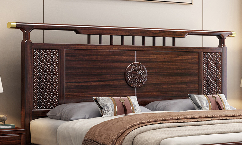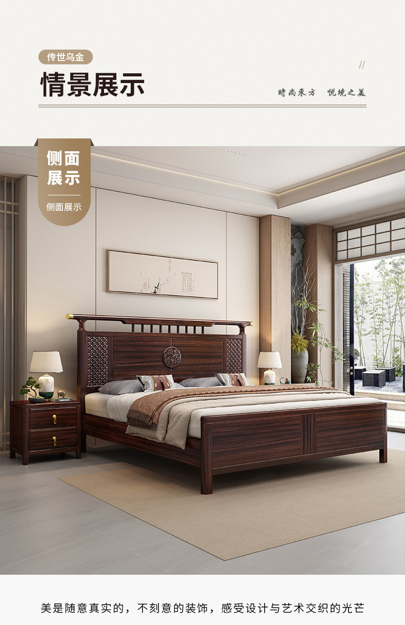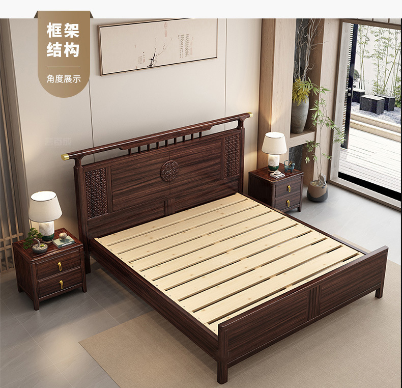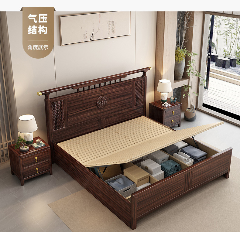 새로운 중국 스타일의 검은 골드 우드 원목 침대 현대적인 미니멀리스트 1.8m 라이트 럭셔리 마스터 침실 더블 침대 높낮이 상자 저장 결혼식스토어 가기