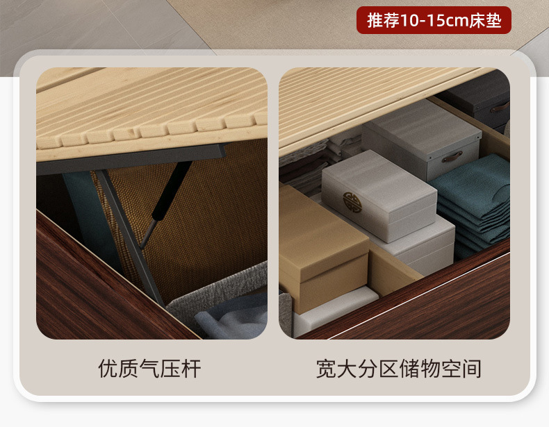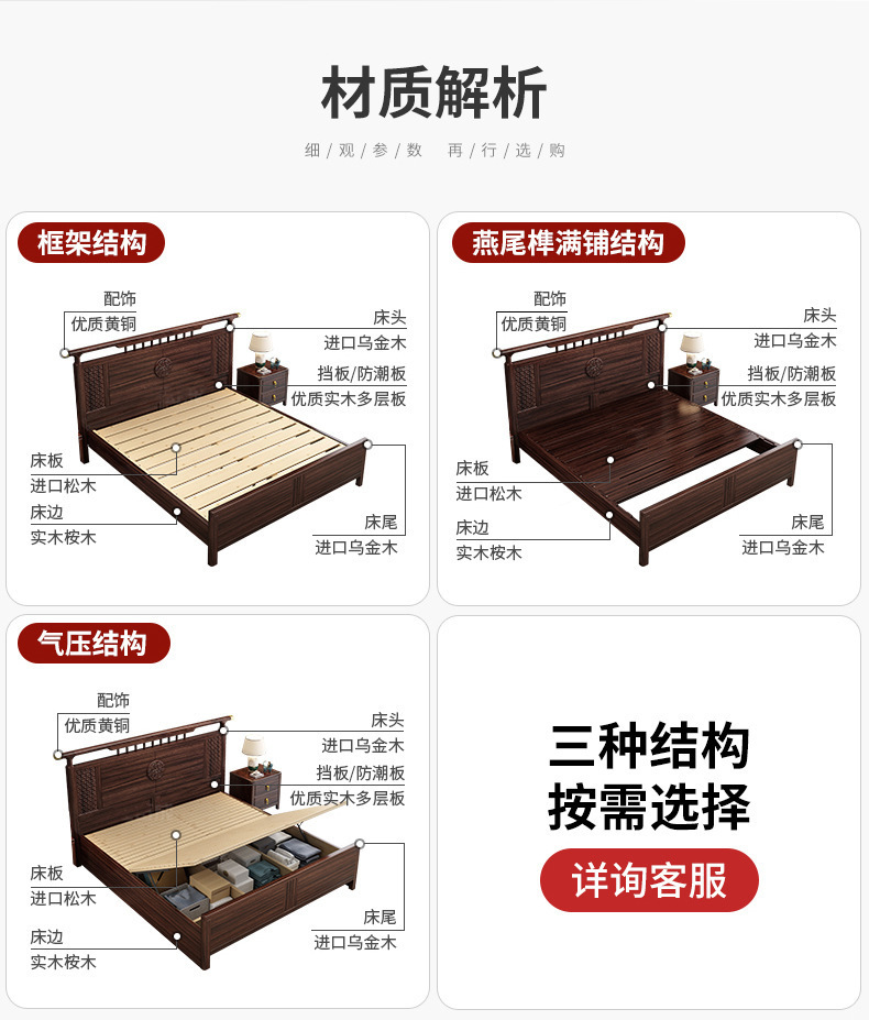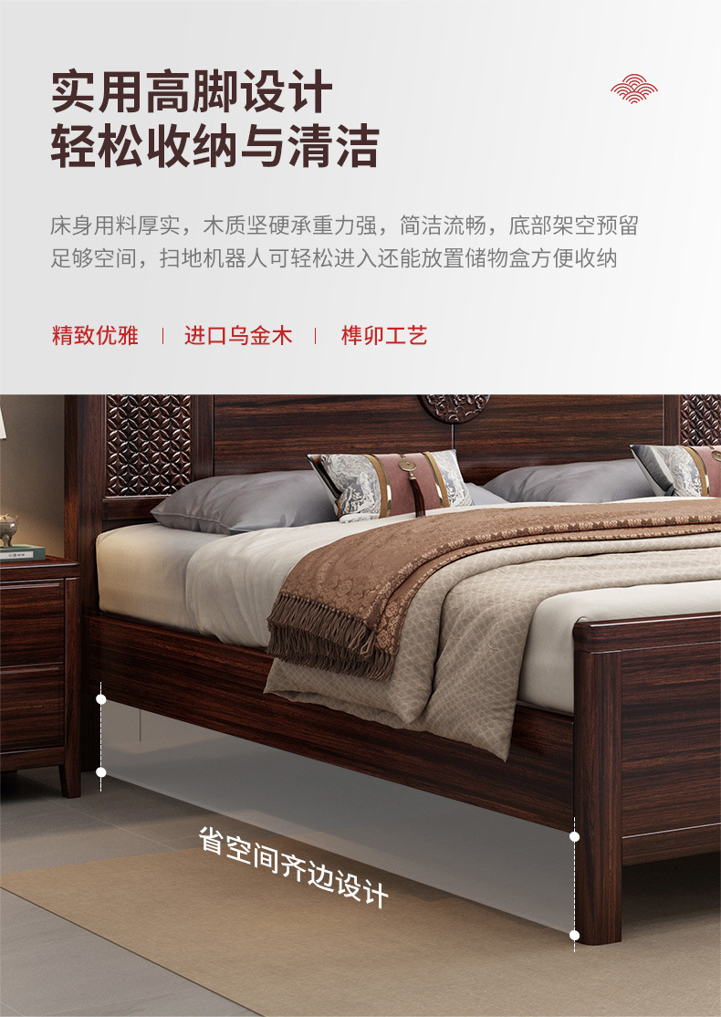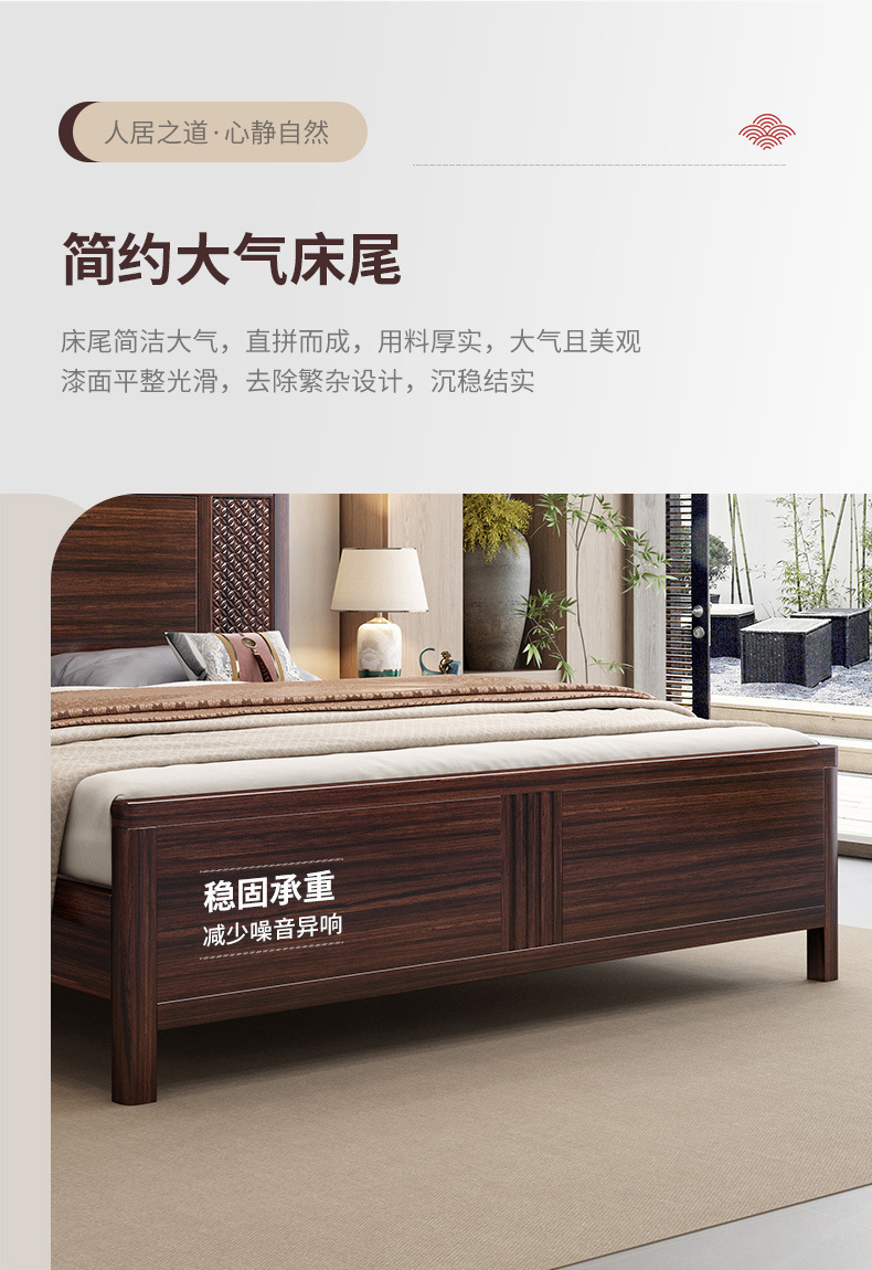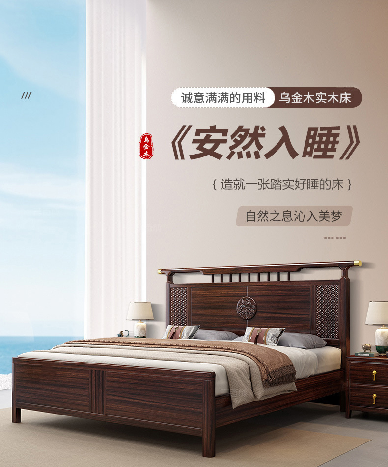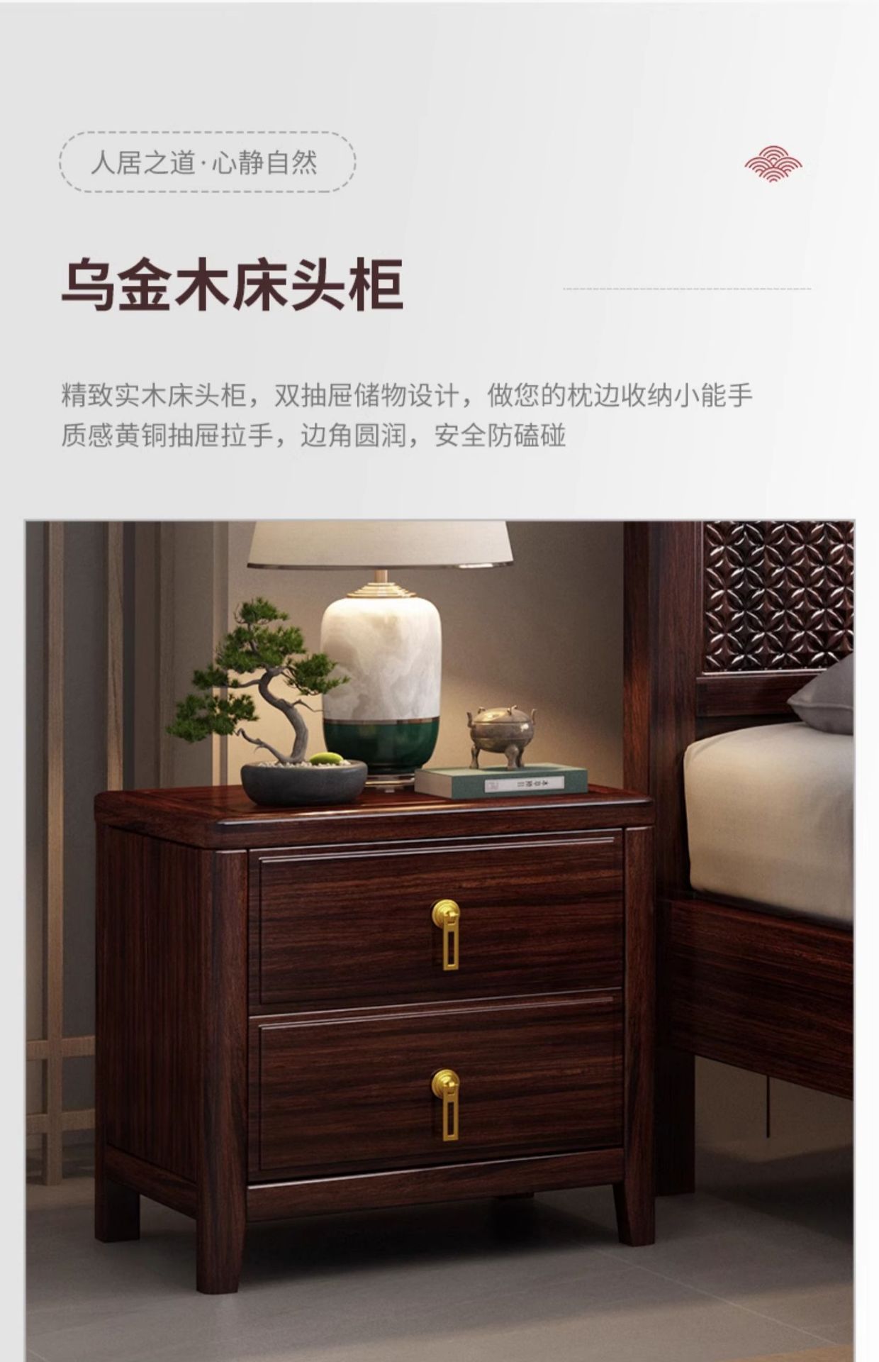 새로운 중국 스타일의 검은 골드 우드 원목 침대 현대적인 미니멀리스트 1.8m 라이트 럭셔리 마스터 침실 더블 침대 높낮이 상자 저장 결혼식스토어 가기