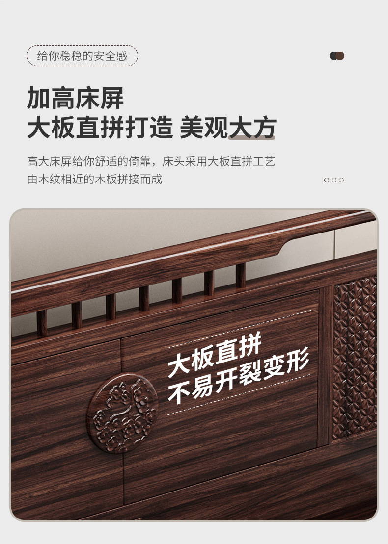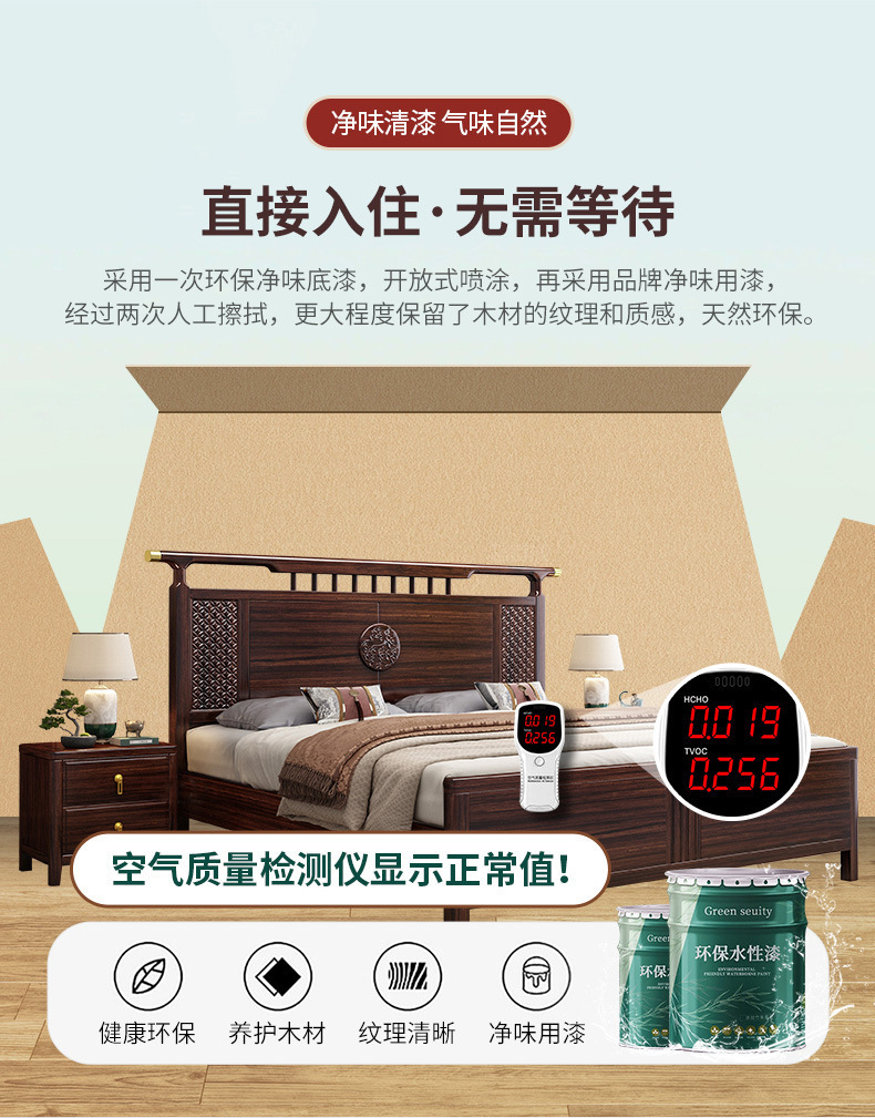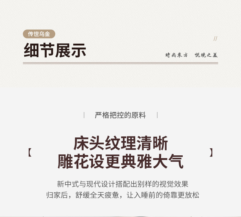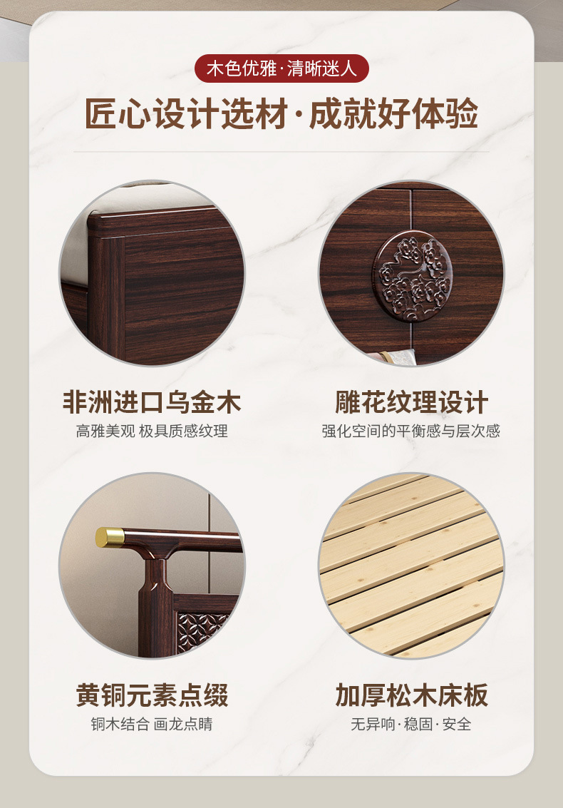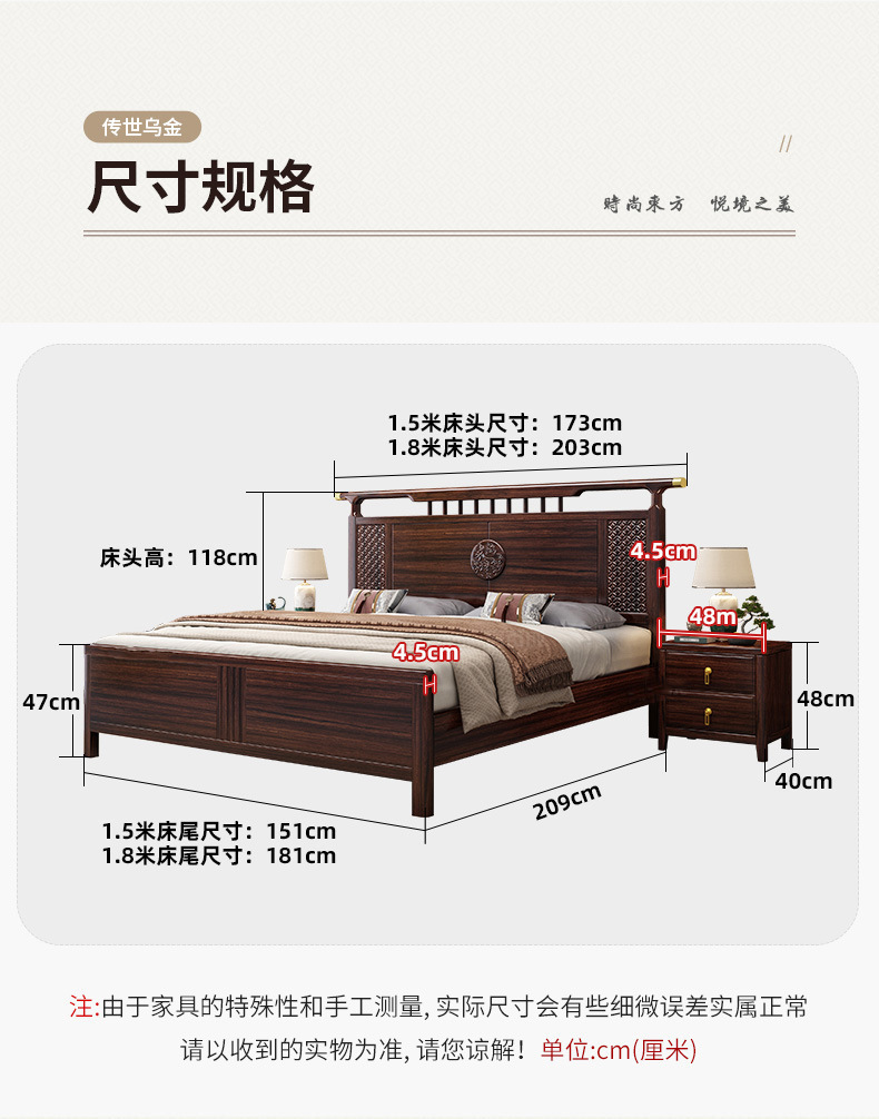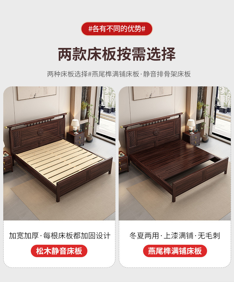새로운 중국 스타일의 검은 골드 우드 원목 침대 현대적인 미니멀리스트 1.8m 라이트 럭셔리 마스터 침실 더블 침대 높낮이 상자 저장 결혼식스토어 가기