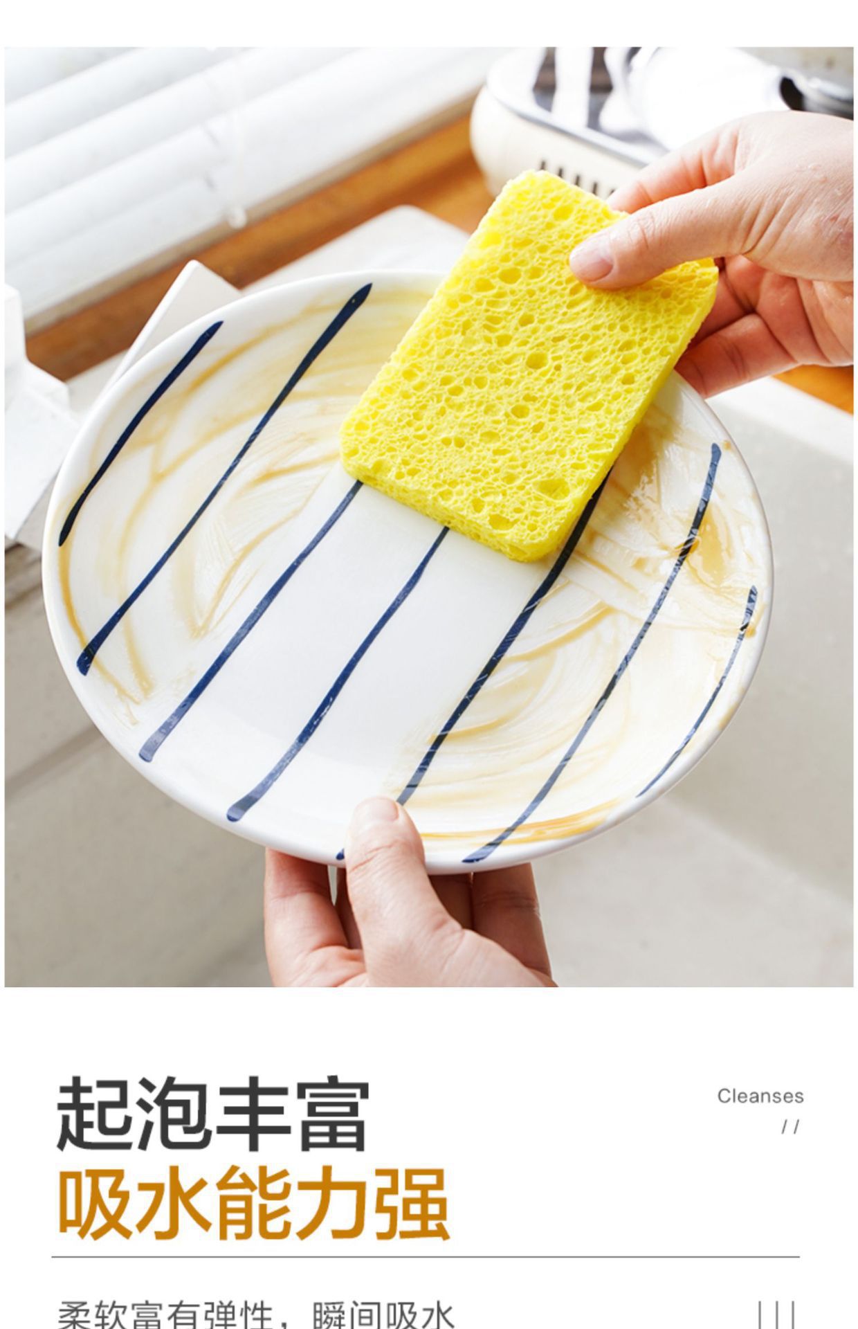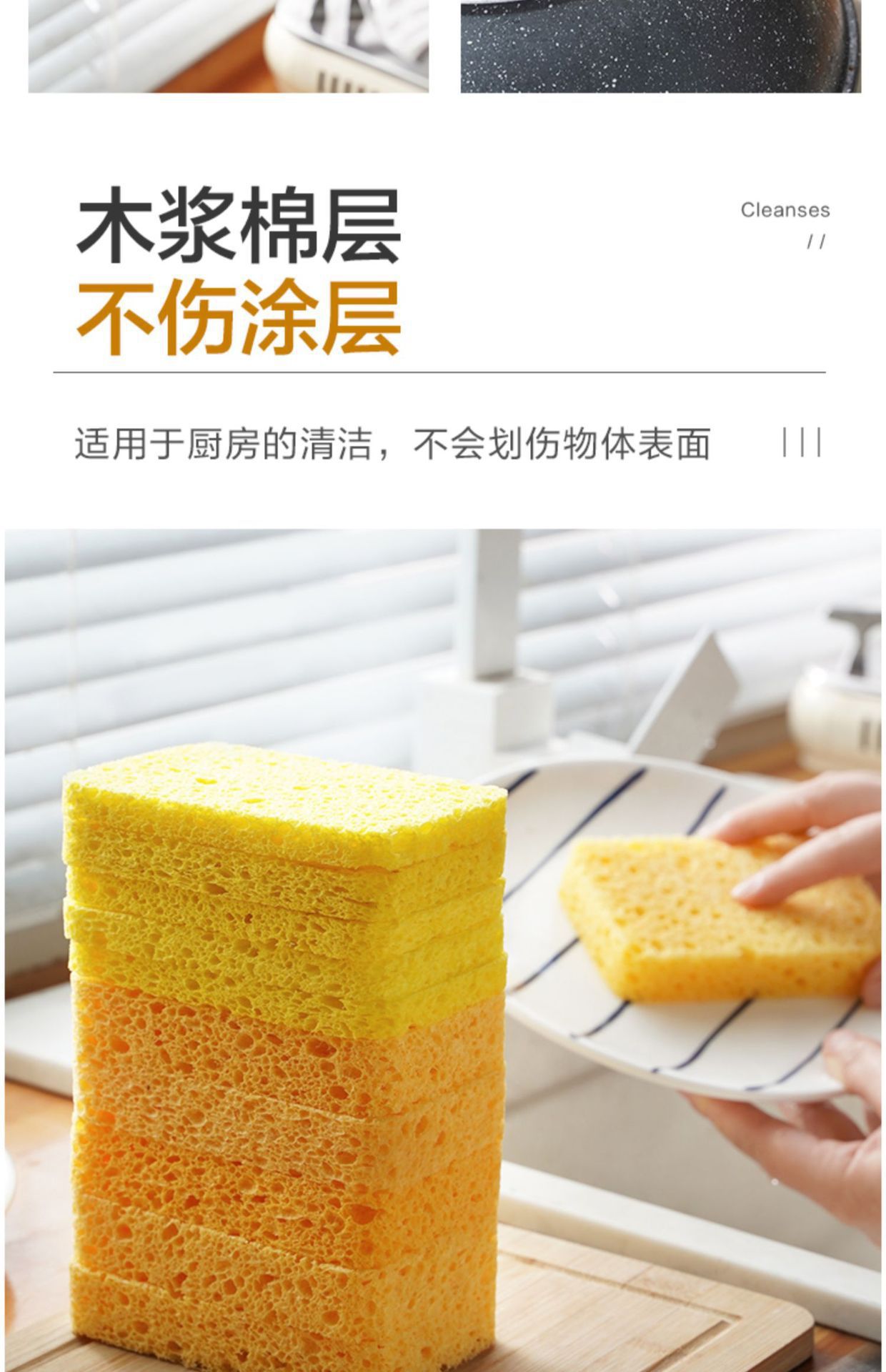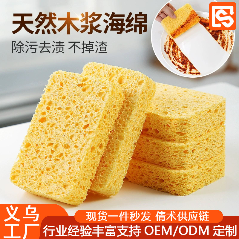접시를 씻고 설거지를위한 스폰지 및 마술 스크럽 청소를위한 천연 목재 펄프 면화 걸레스토어 가기