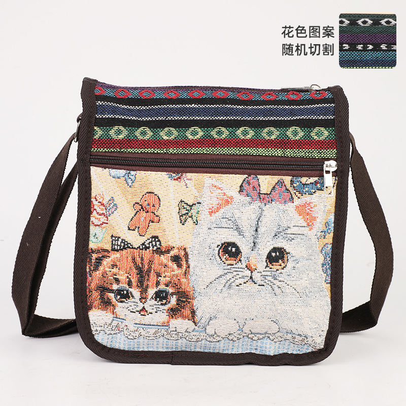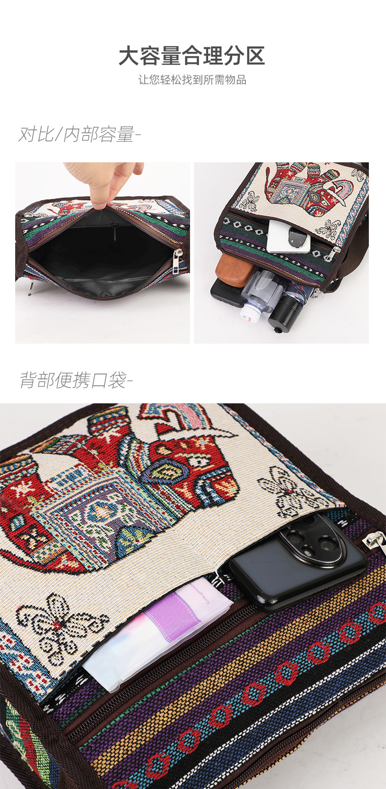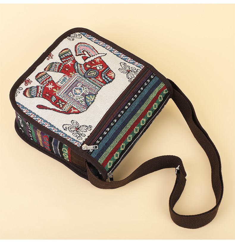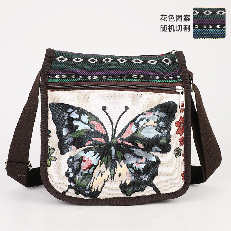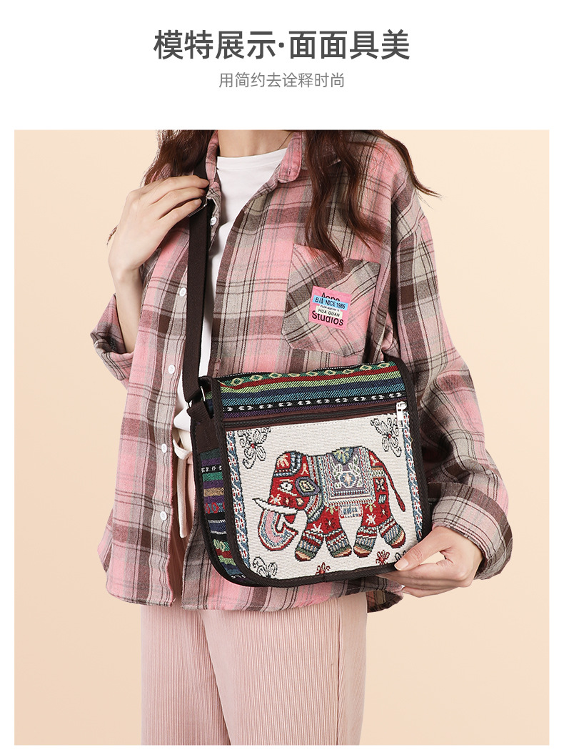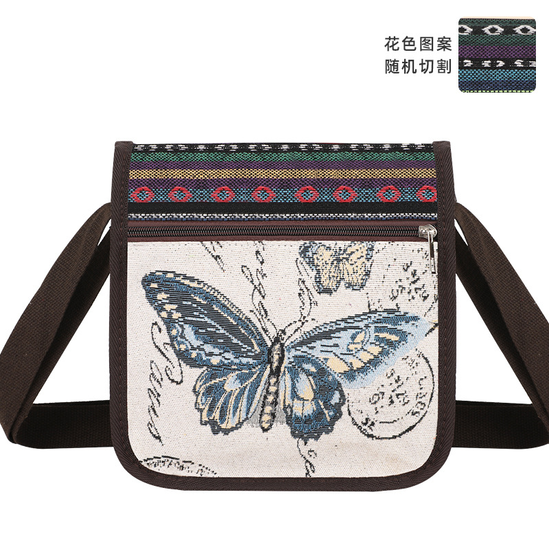 새로운 패션 통근 및 외출 크로스 바디 캔버스 가방 양면 자수 중국 민족 스타일 직물 숄더백 도매 가능