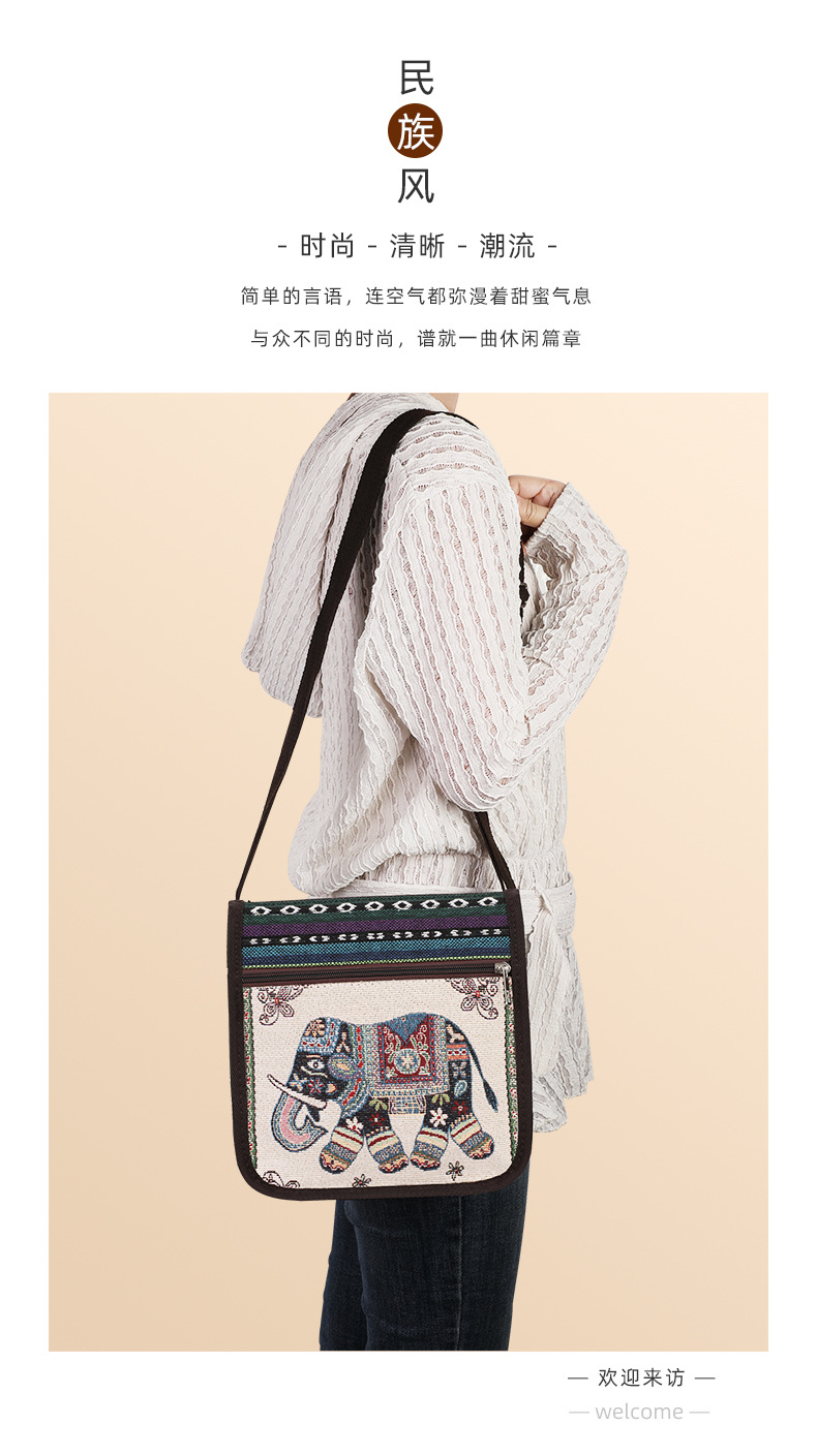 새로운 패션 통근 및 외출 크로스 바디 캔버스 가방 양면 자수 중국 민족 스타일 직물 숄더백 도매 가능스토어 가기