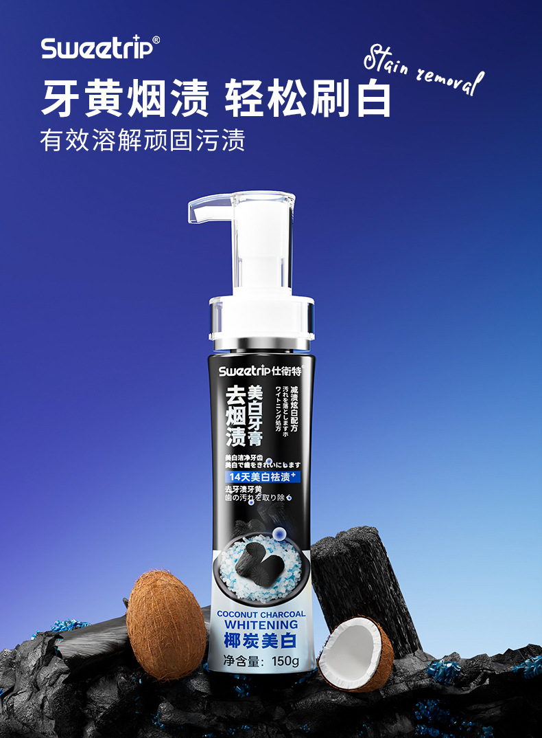 일본 브랜드 얼룩 제거 미백 클렌징 치약 신선한 호흡 프레스 유형 코코넛 숯 미백 공장 도매
