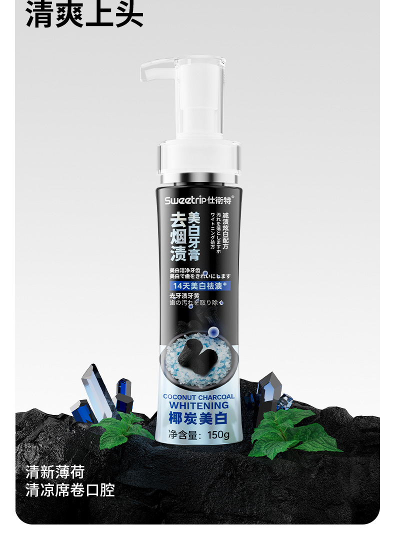 일본 브랜드 얼룩 제거 미백 클렌징 치약 신선한 호흡 프레스 유형 코코넛 숯 미백 공장 도매스토어 가기