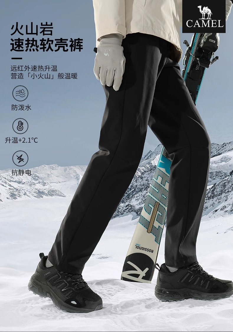 여성용 Camel Outdoor Jacket Pants 2025 가을 겨울 벨벳 따뜻한 레깅스 스웨트 팬츠 남성용 방풍 및 방수 소프트 쉘 바지