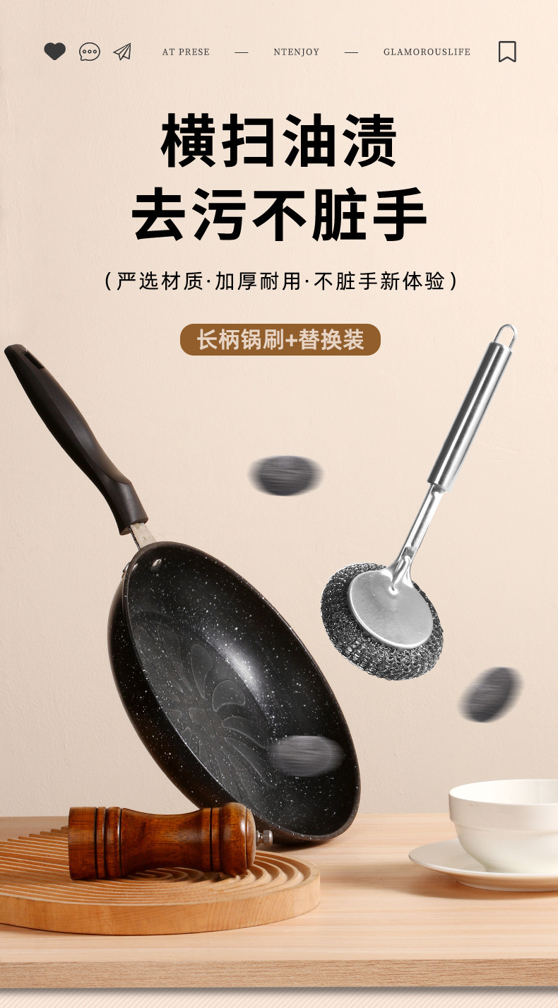 不锈钢锅刷带柄家用洗锅神器不伤锅厨房专用清洁刷钢丝长柄洗碗刷스토어 가기