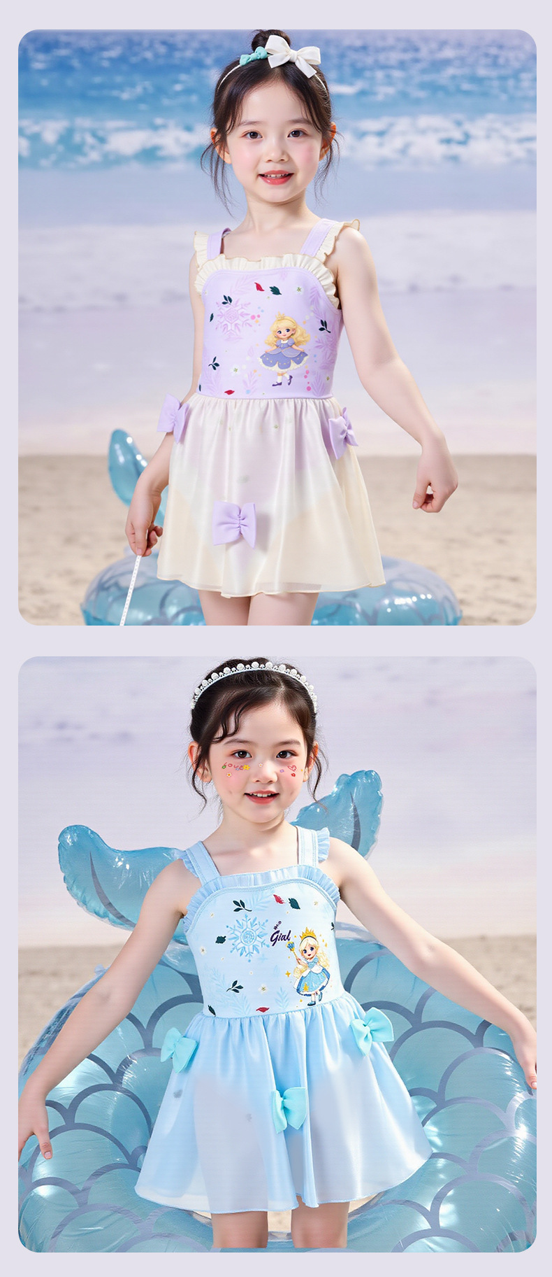 어린이 수영복 소녀 나비 네트 원사 공주 드레스 수영복 아기 빠른 건조 통기성 온천 원피스 수영복