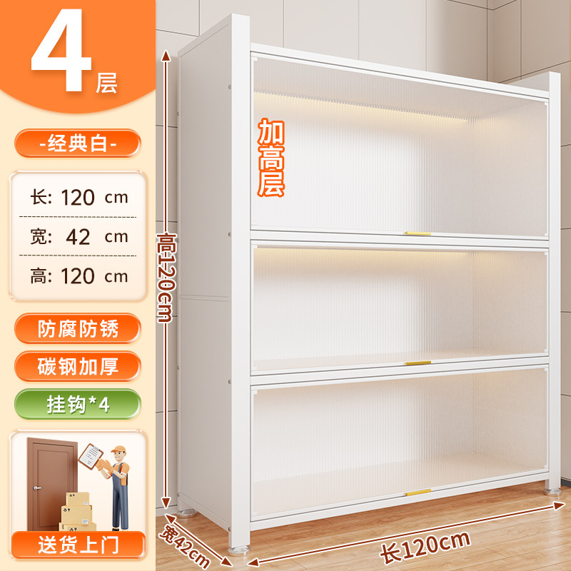 • 단층 고조 흰색 3도어 4층 [길이 90-폭 42-높이 120] 특대 탄소강 - 안전하고 무취