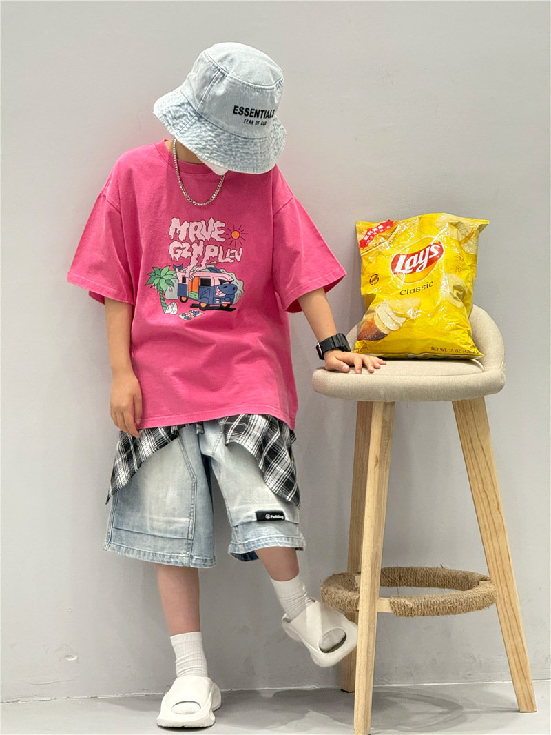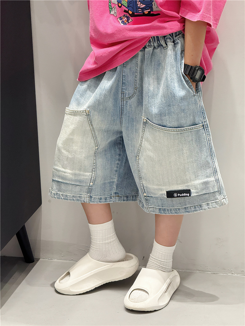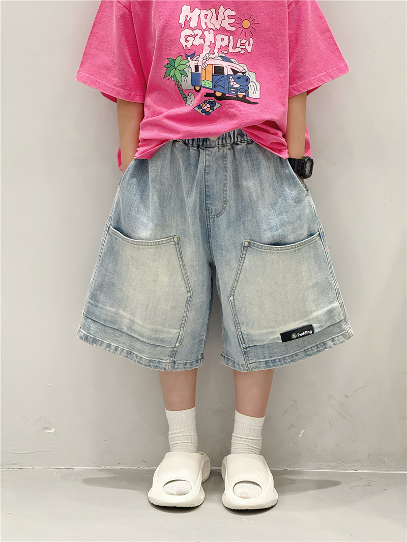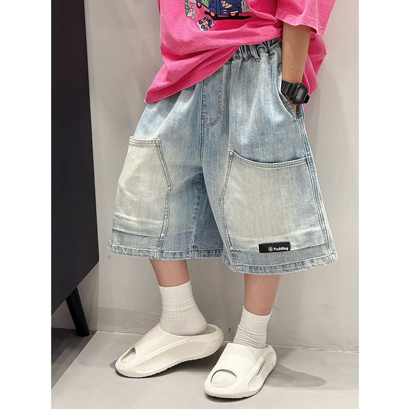소년 반바지 여름 2025 새로운 아동 의류 소년 5 점 바지 느슨한 중대형 아동 바지 여름 아동 청바지스토어 가기