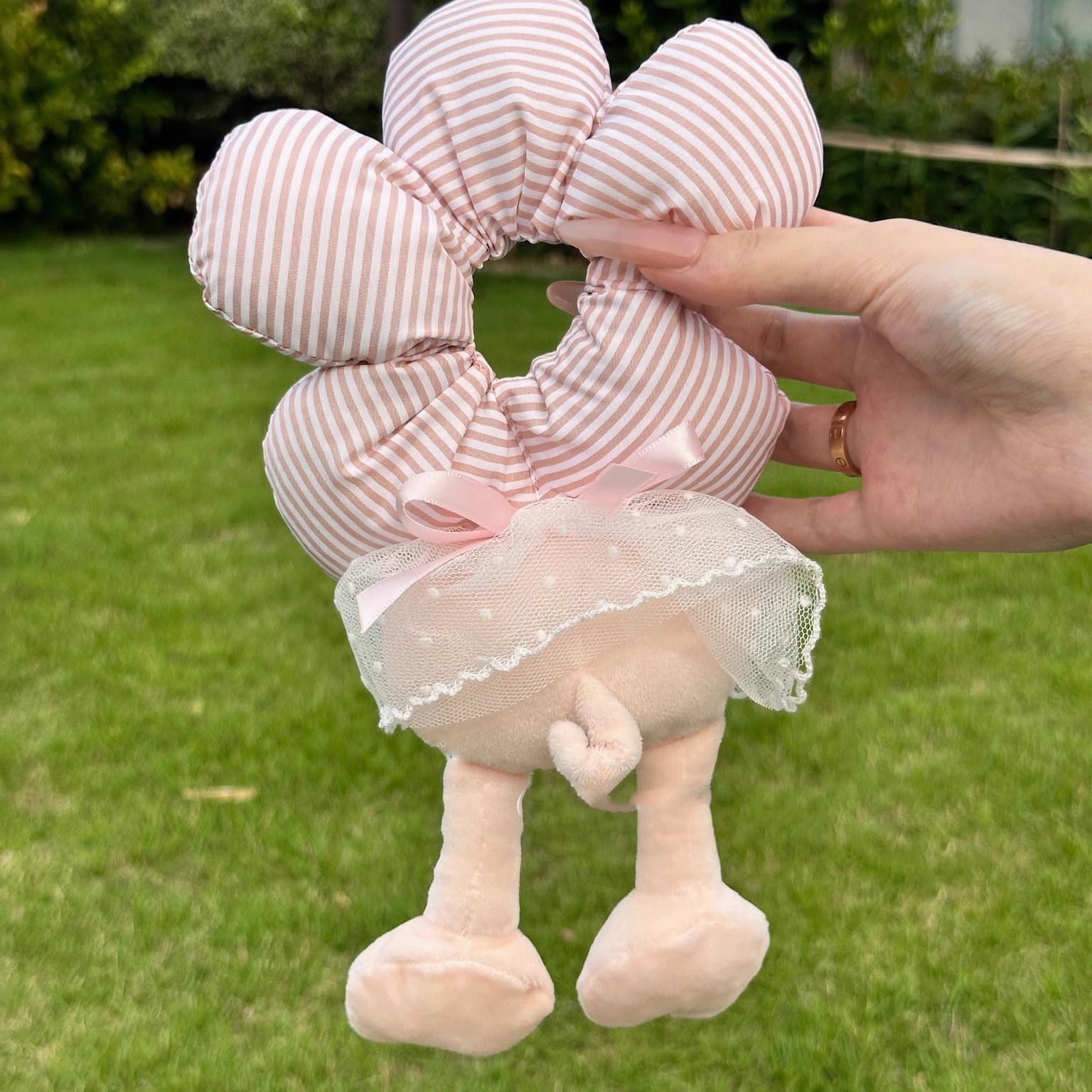 • 핑크 체크 무늬 머리끈