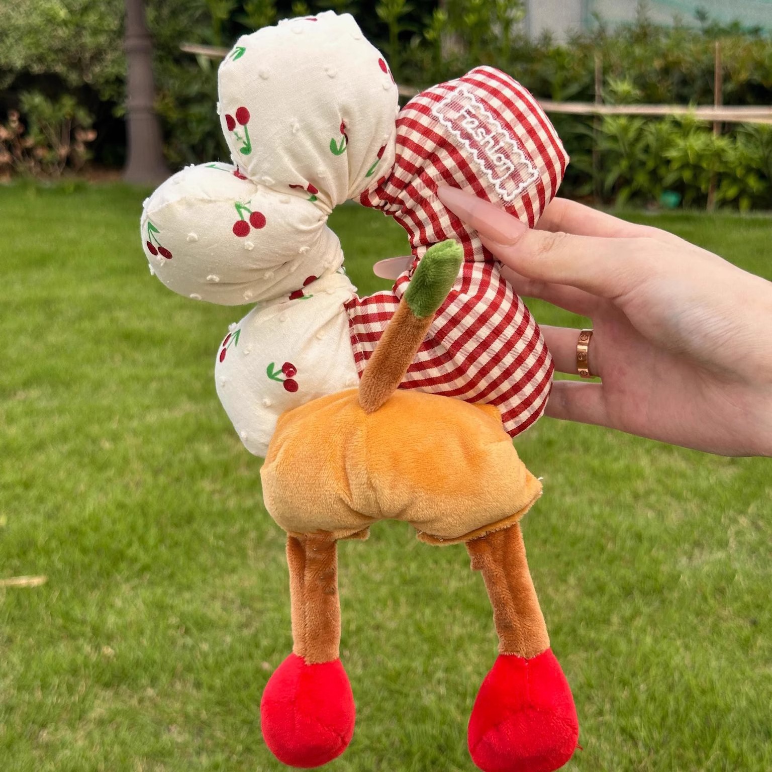 • 체리 체크무늬 머리끈