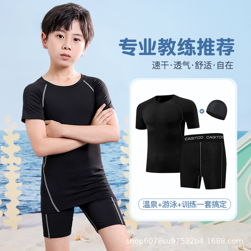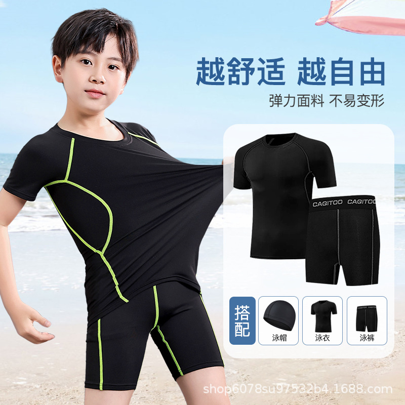 남아용 수영복, 아동 및 청소년 수영복, 분리형 자외선 차단 속건 학생용 수영복, 특대 사이즈 수영모 포함