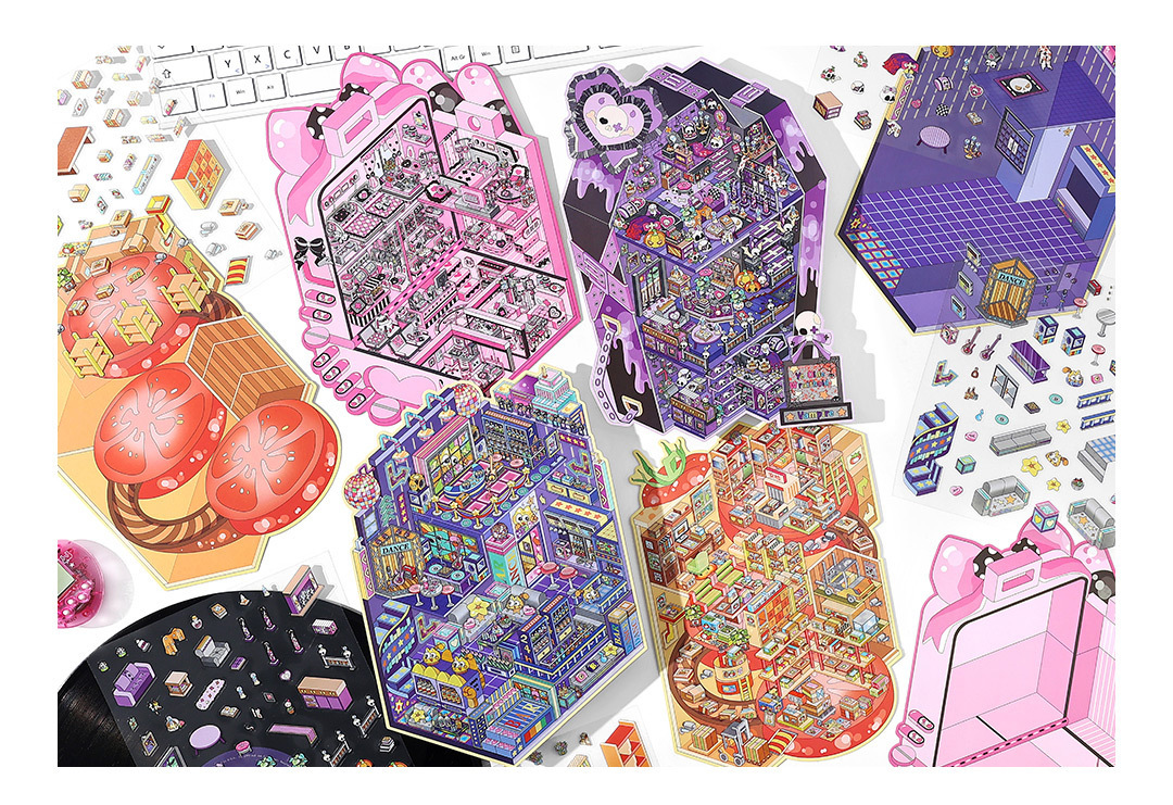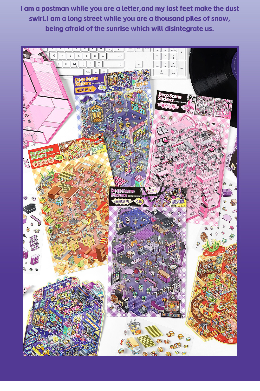 Infeel.MePET2.5D 대형 조경 스티커 오늘은 14개의 쌓인 3D 하우스 스티커로 운영됩니다.