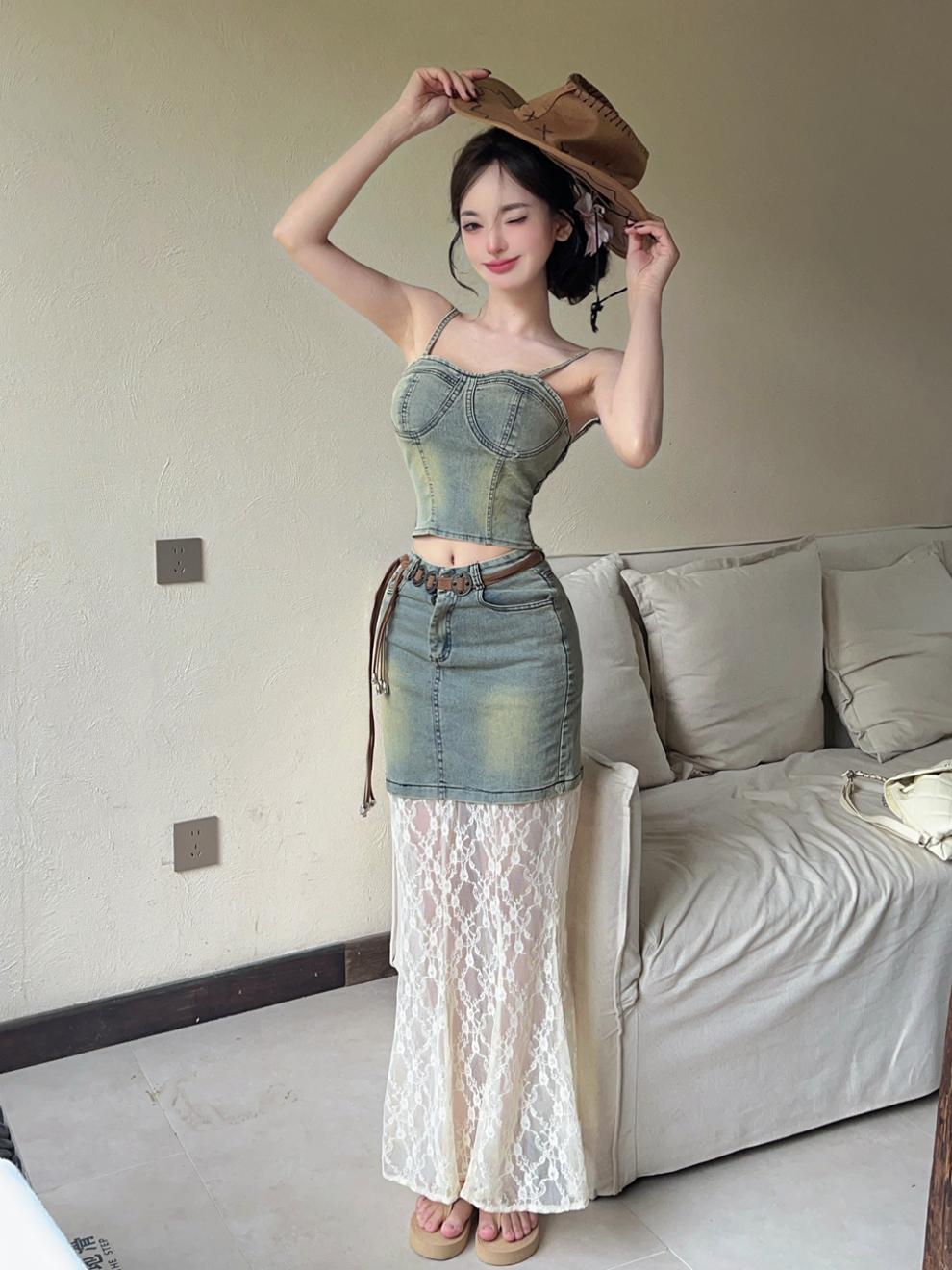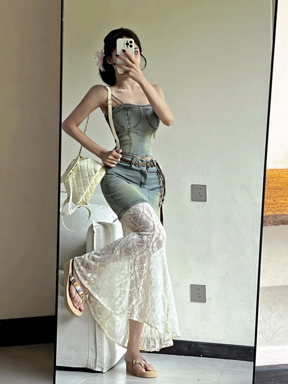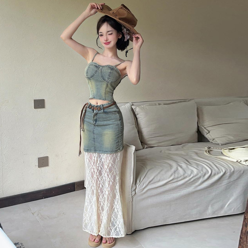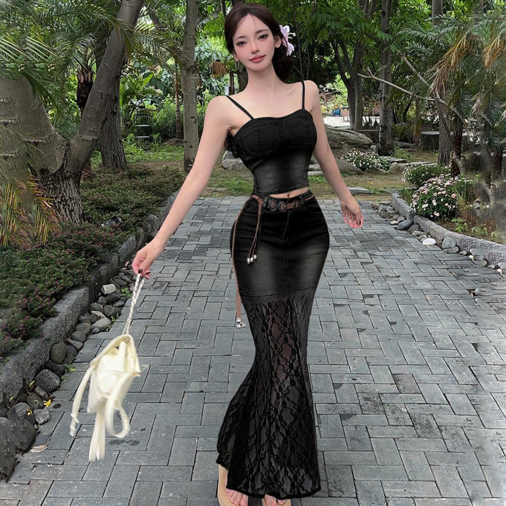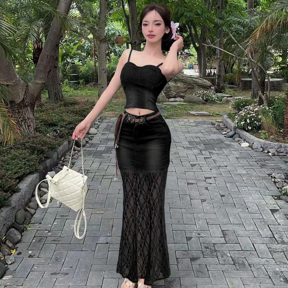 5876 국경 간 대외 무역 여성 의류 도매 동남 아시아 뜨거운 소녀 튜브 탑 스플 라이스 레이스 스커트 정장스토어 가기