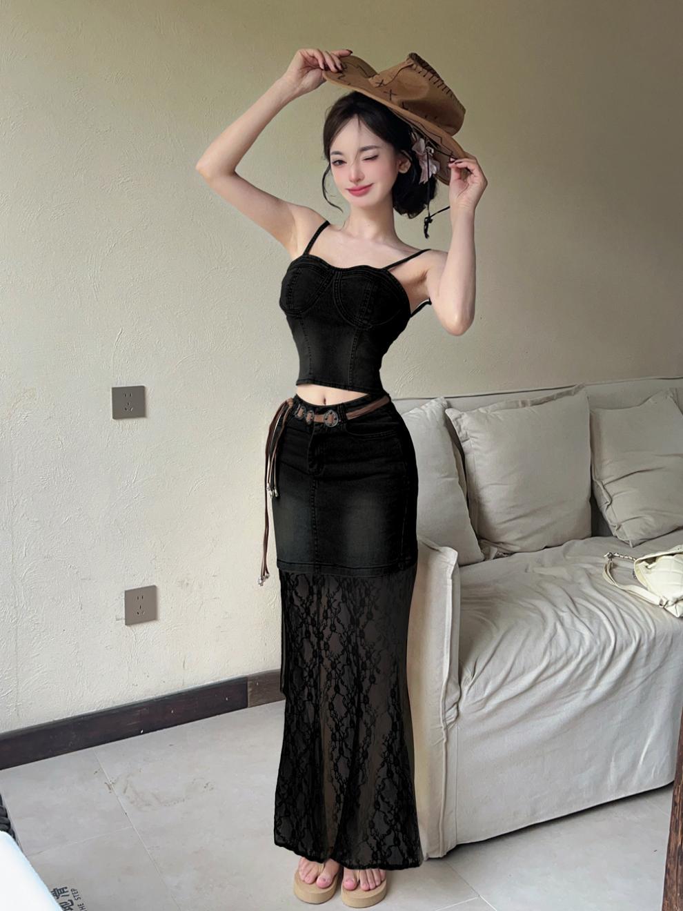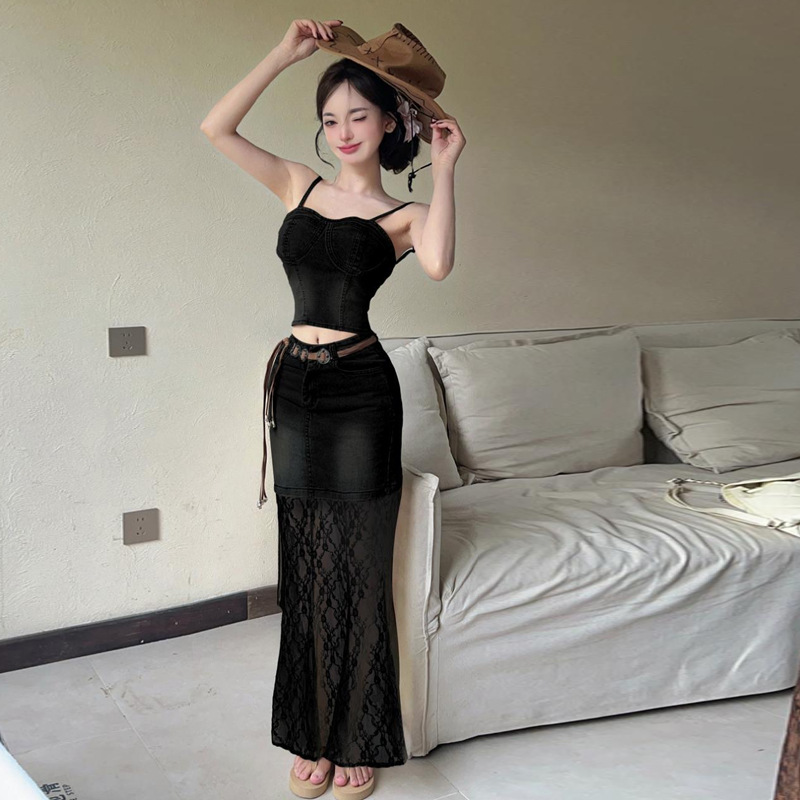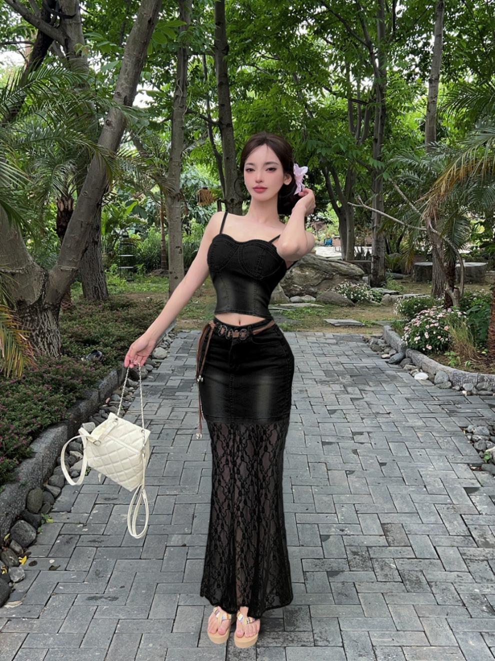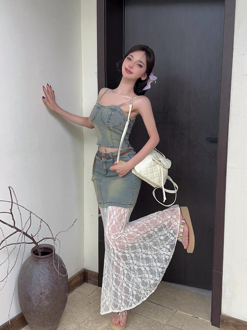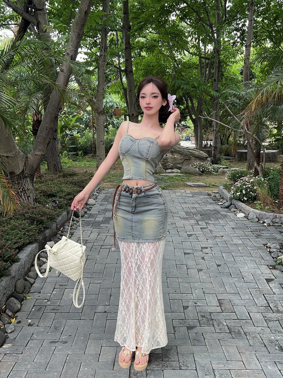 5876 국경 간 대외 무역 여성 의류 도매 동남 아시아 뜨거운 소녀 튜브 탑 스플 라이스 레이스 스커트 정장스토어 가기