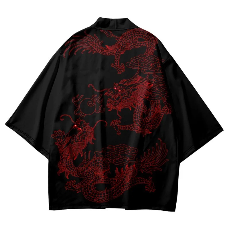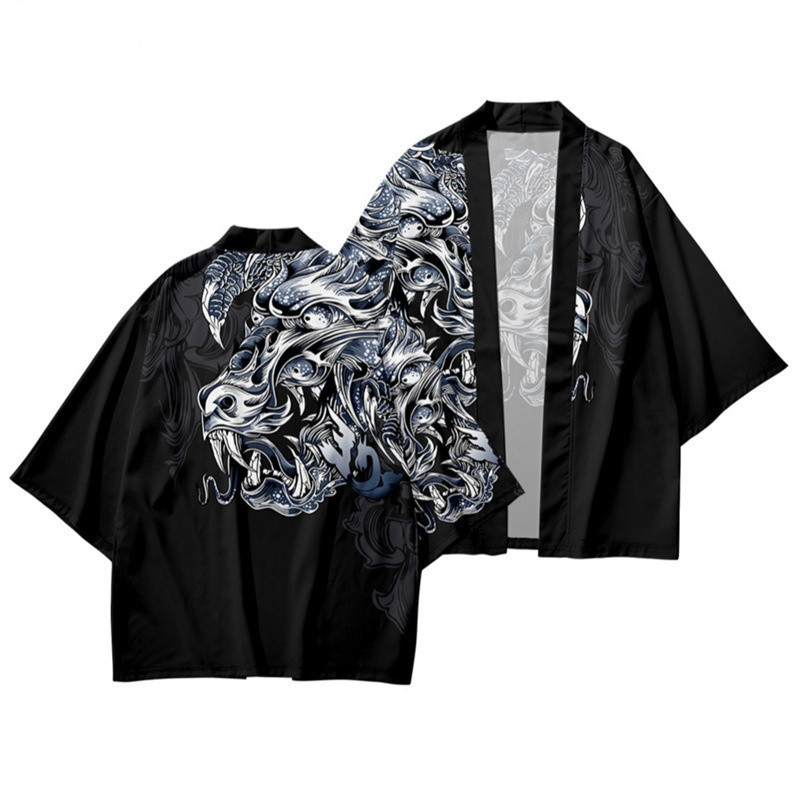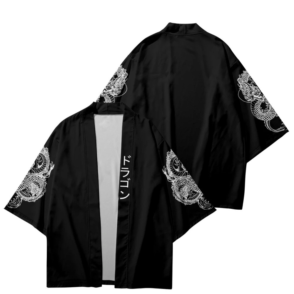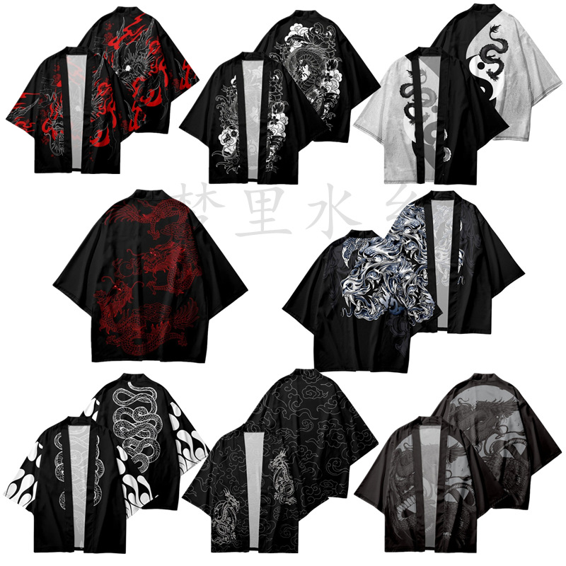 크로스보더 2025 신작 하라주쿠 스타일 드래곤 기모노 3D 프린트 패턴 일본식 망토 재킷 여성용 잠옷 카디건스토어 가기
