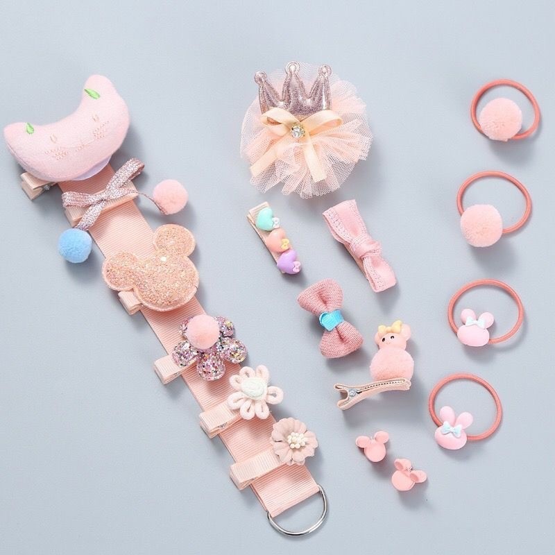 어린이 헤어 액세서리 18 조각 세트 귀여운 공주 머리핀 머리띠 어린 소녀 생일 선물 유아 머리 장식 선물 상자