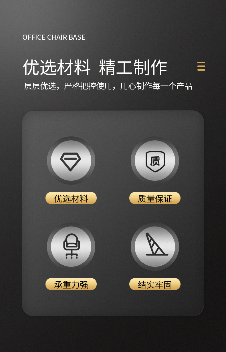 다이캐스트 알루미늄 일체형 버터플라이 섀시 컴퓨터 의자 플레이트 3단 잠금 베이스 인체공학적 의자 손잡이가 있는 사각 플레이트