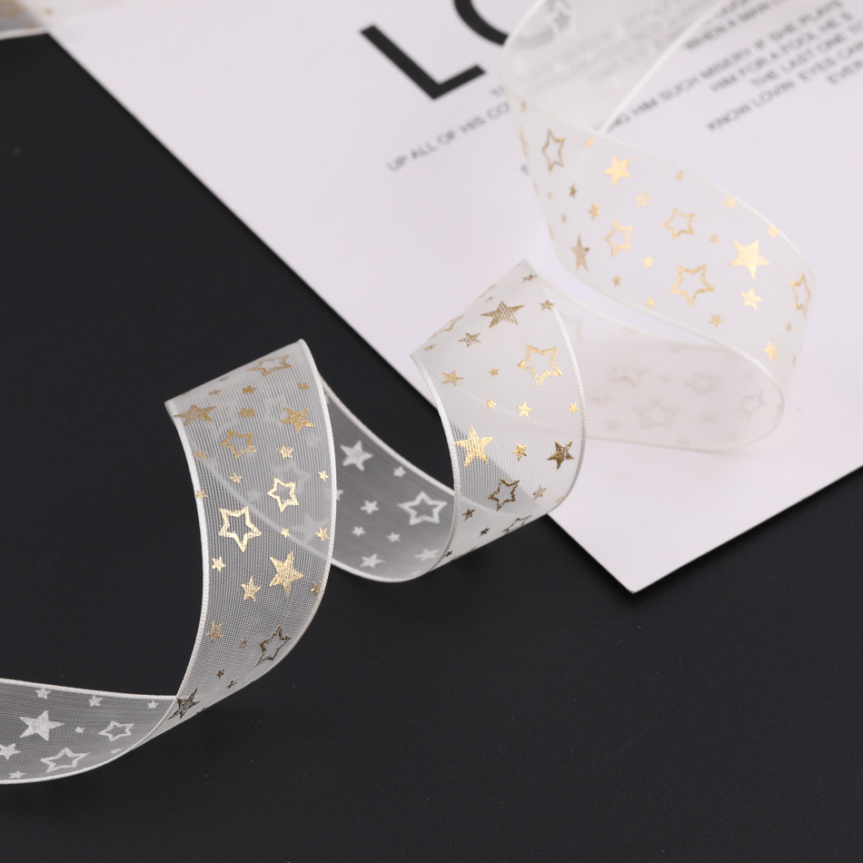 2.5cm Organza 핫 스탬핑 영어 리본 꽃 케이크 베이킹 선물 상자 포장 리본 쥬얼리 작은 액세서리스토어 가기